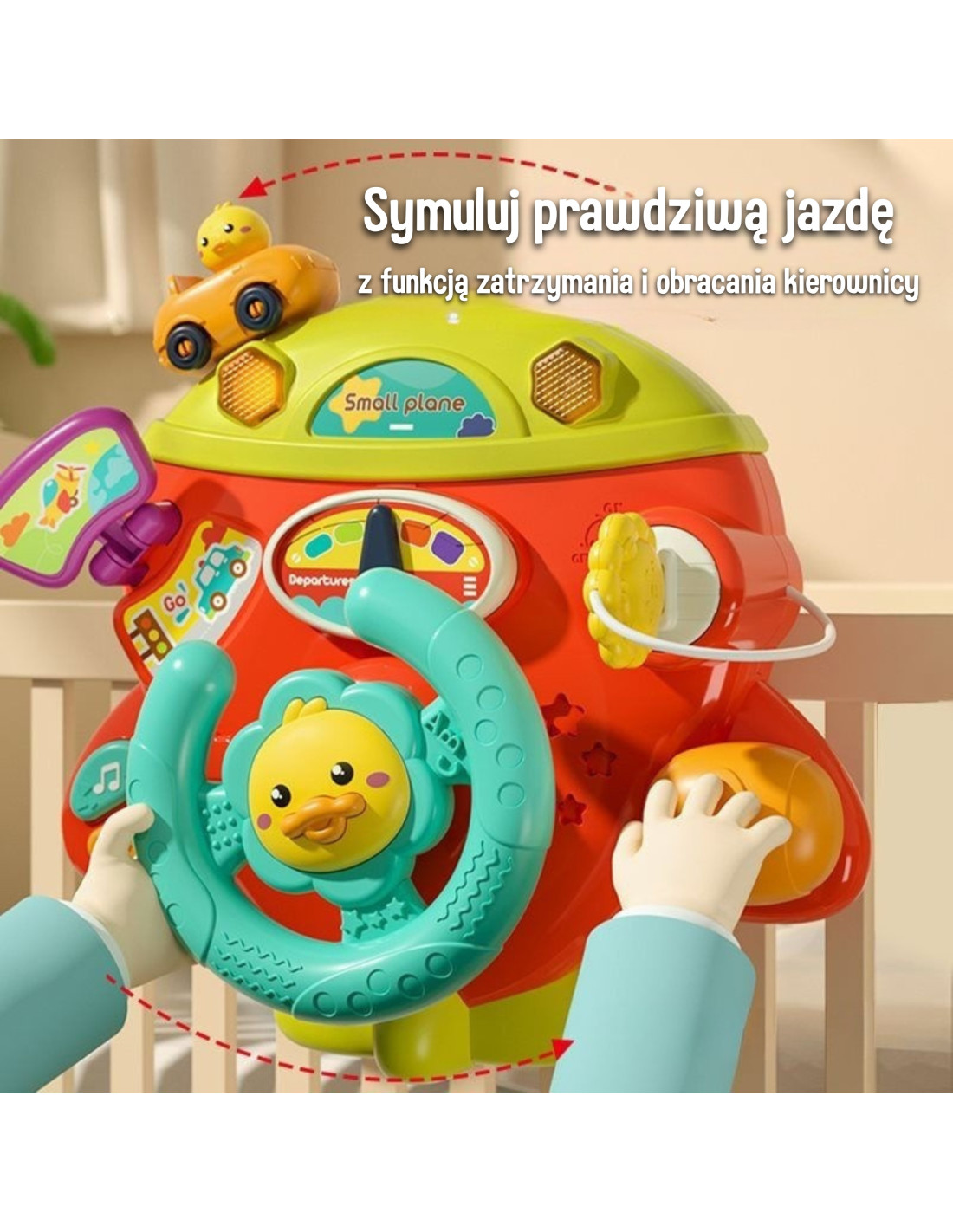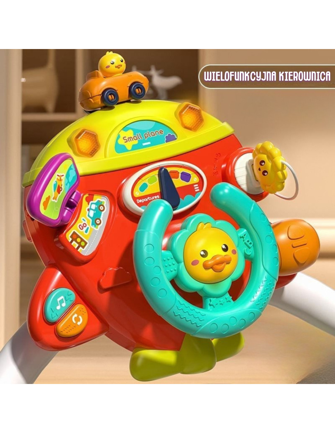 Discover a toy that will delight every little automotive and aviation fan! This interactive airplane-shaped steering wheel from Woopie is a true entertainment center that engages and educates. Thanks to it, your child can take on the role of a pilot, learning basic traffic rules, all while enjoying fun sounds, colorful lights, and moving parts. It's the perfect gift for a toddler who develops through play! The unique airplane shape and rich functionality will quickly make this toy a favorite companion for everyday adventures. Plus, thanks to Velcro straps , it can be easily attached to a stroller or crib, keeping your child entertained anywhere!