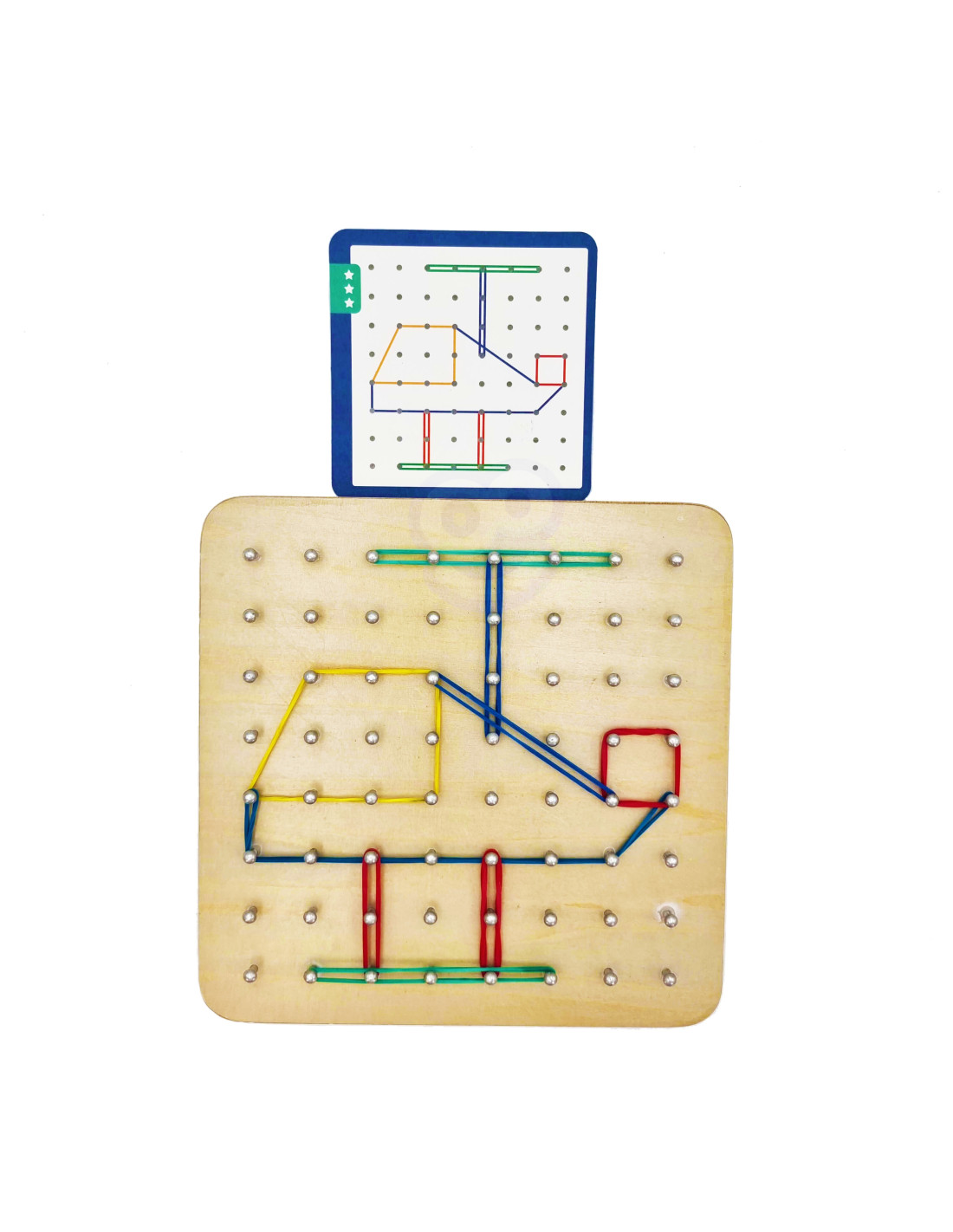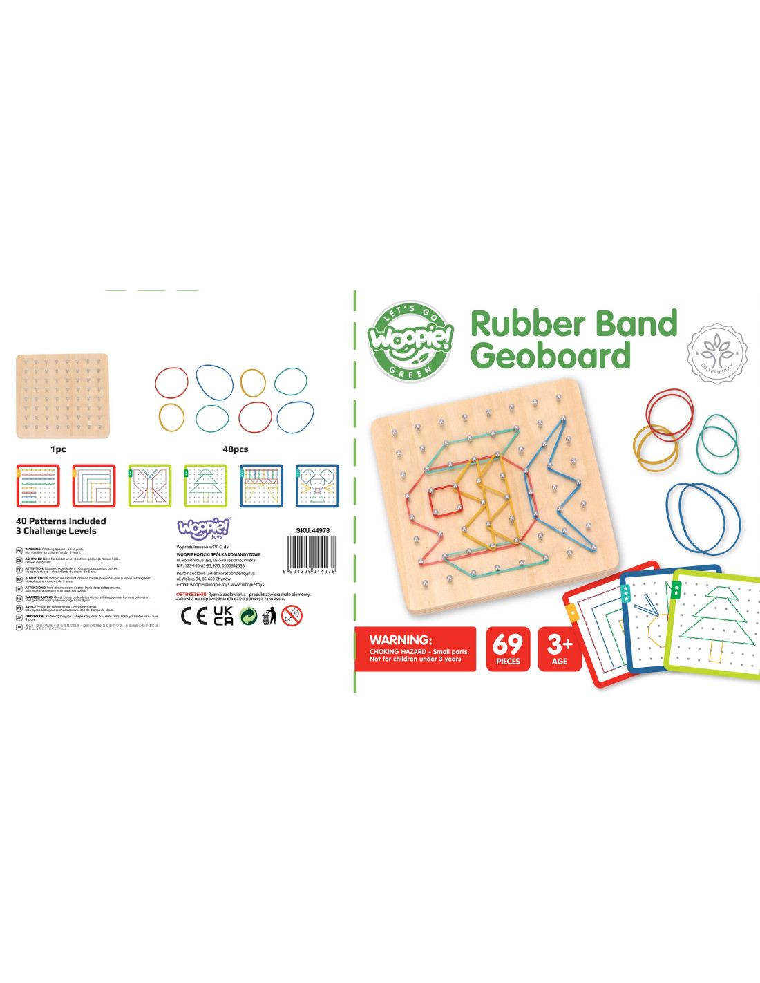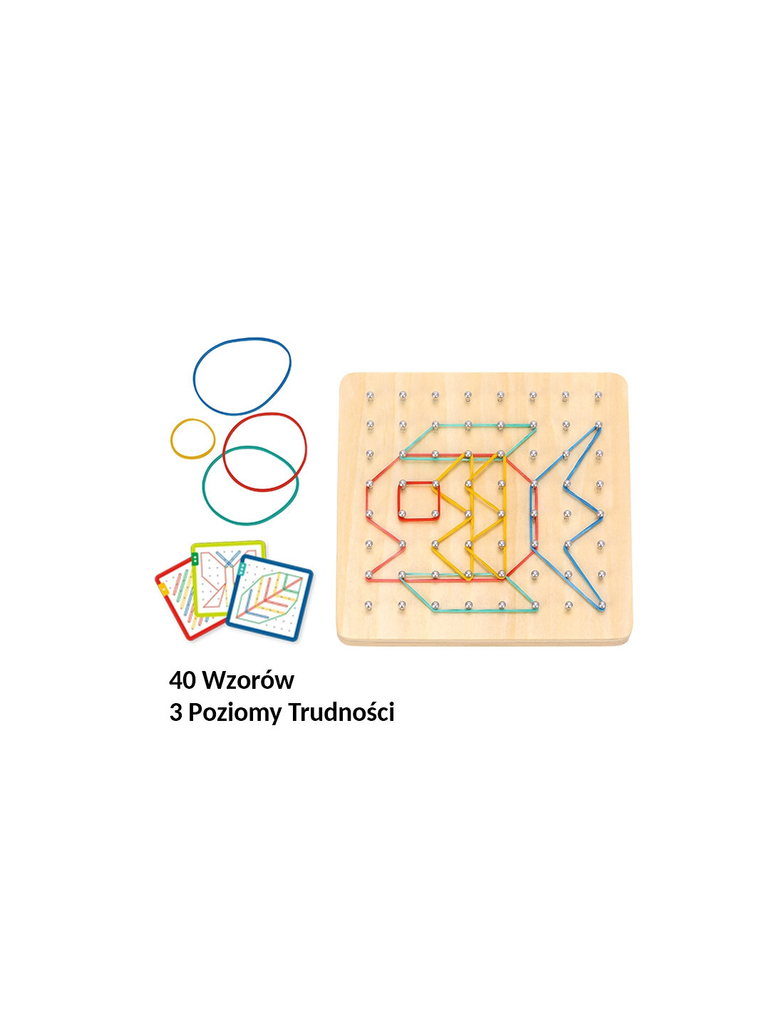 The GeoPlan Wooden Puzzle from WOOPIE, part of the eco-friendly GREEN series, is a unique educational toy that combines learning with creative play! It helps children develop manual skills , concentration, and logical thinking by creating various shapes and patterns with colorful rubber bands on a special board with pegs. You can also introduce a memory game element or let your little one create their own unique compositions. It's a fun game that won't bore you and will keep you engaged for a long time!