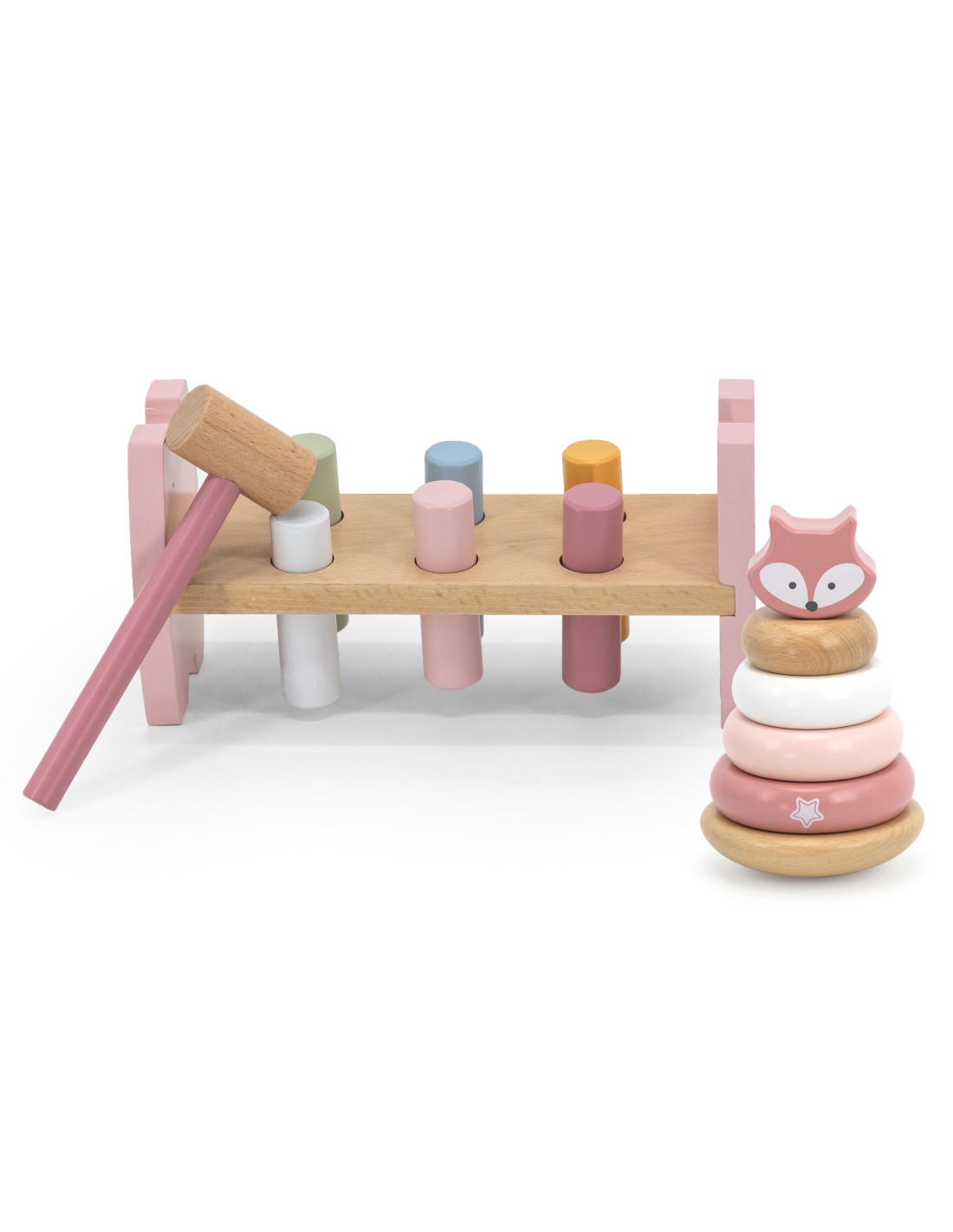 This set from the PolarB series by Viga includes two pastel wooden toys: an educational pyramid and a hammer and punch. Both toys will not only keep your child entertained but will also contribute to the development of fine motor skills , logical thinking , and learning colors . Spending time with these toys will help your child develop precise hand movements, which will facilitate learning to write later.