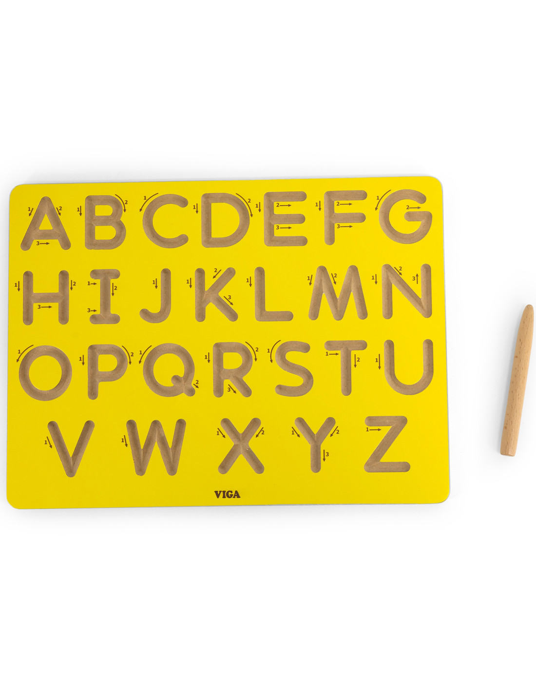The VIGA drawing board is the perfect way for children to practice their hand before learning to write . Delicately engraved and curved grooves make it ideal for children to control hand movements and develop muscle memory through repeated tracing. Each letter is marked with arrows, helping children write in the correct order. The board is available in a compact size , allowing children to hold and use it on a table or desk. Through play, children learn the movements responsible for drawing and writing , develop fluidity , and practice eye-hand coordination.