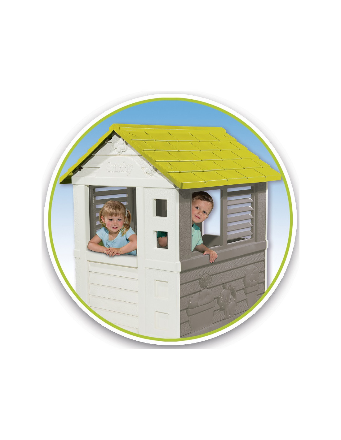 The sturdy Jolie playhouse fits perfectly into the garden, allowing children to imagine countless stories. Thanks to its large interior space, children can invite friends to play together. The playhouse features an attractive, spring-themed color scheme.