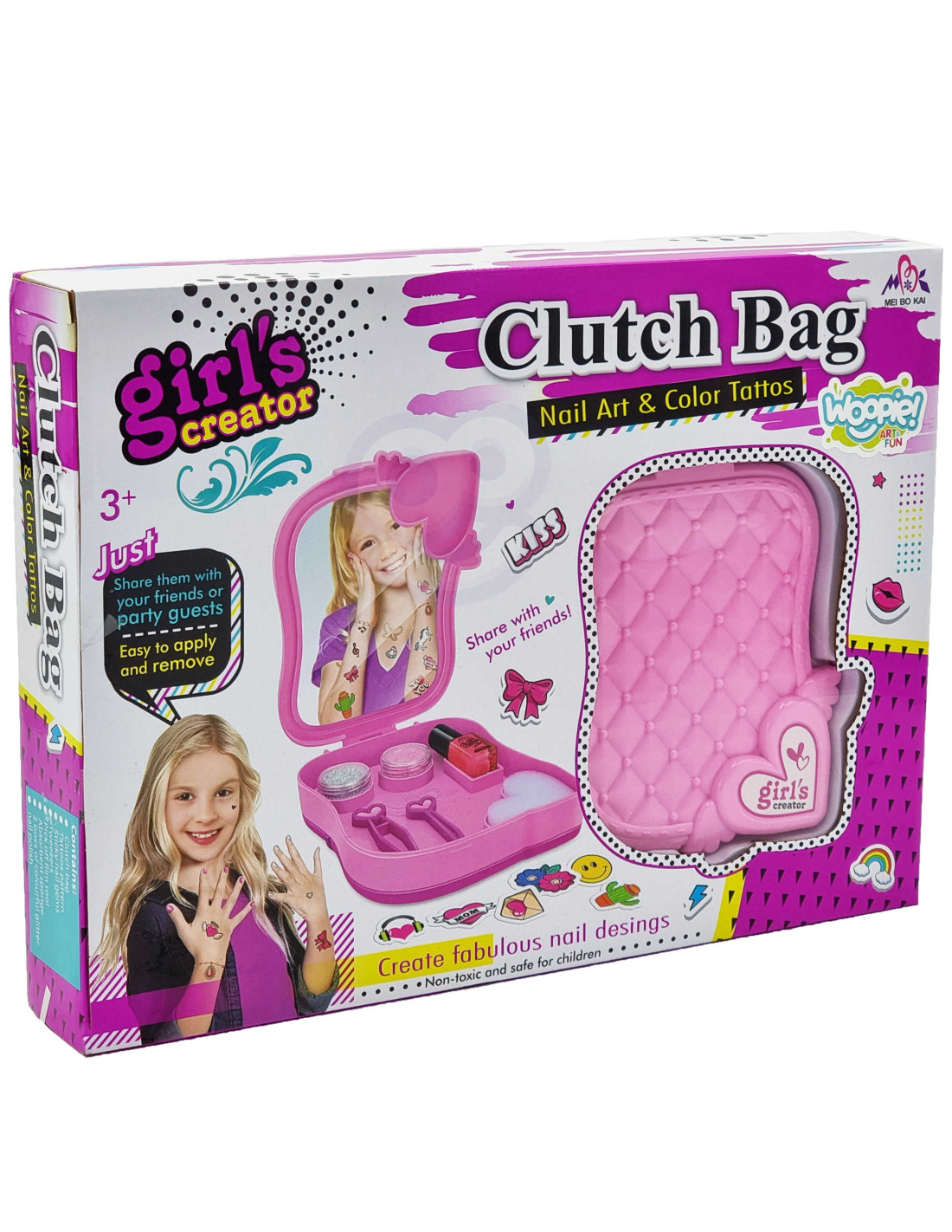 The WOOPIE ART&FUN Makeup Studio Painting Kit will introduce girls to the world of fashion and allow them to create their own style! The set resembles a real beauty salon. The set includes : a dressing table, two loose glitters, a set of stickers and tattoos, nail polish, a heart-shaped file, tweezers, and a chisel. Simply apply the polish and stickers to your nails and the tattoos to your skin, let it dry, and you're done ! This set is 100% safe for children. It develops early interests , manual skills, and above all, imagination and creativity in creating a unique style!