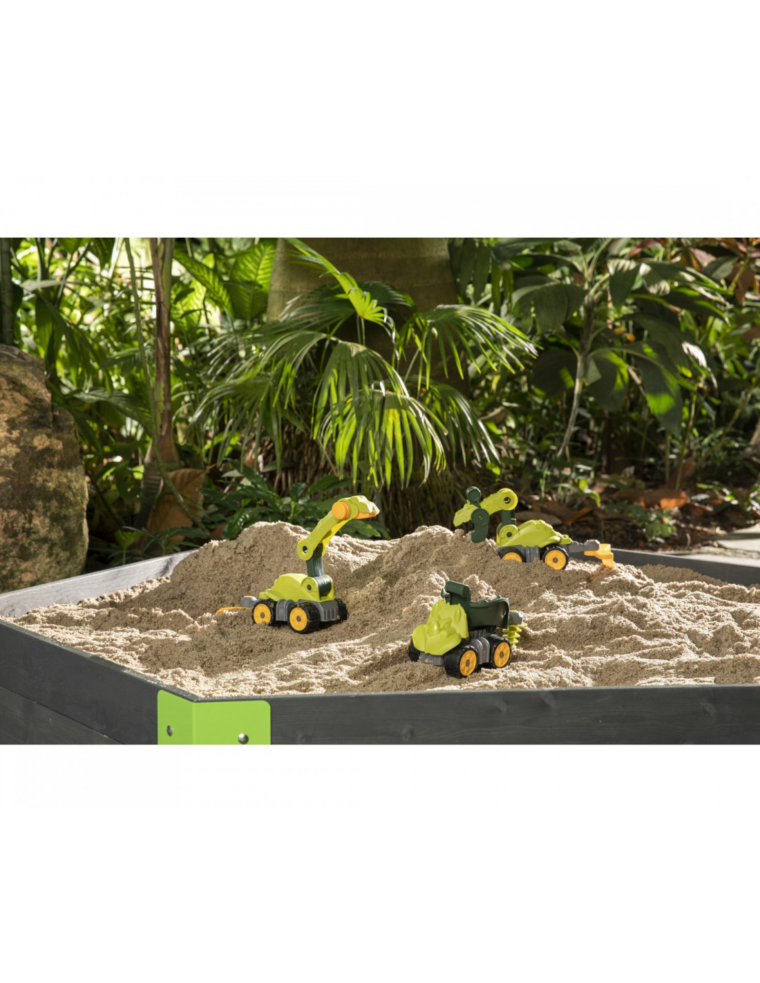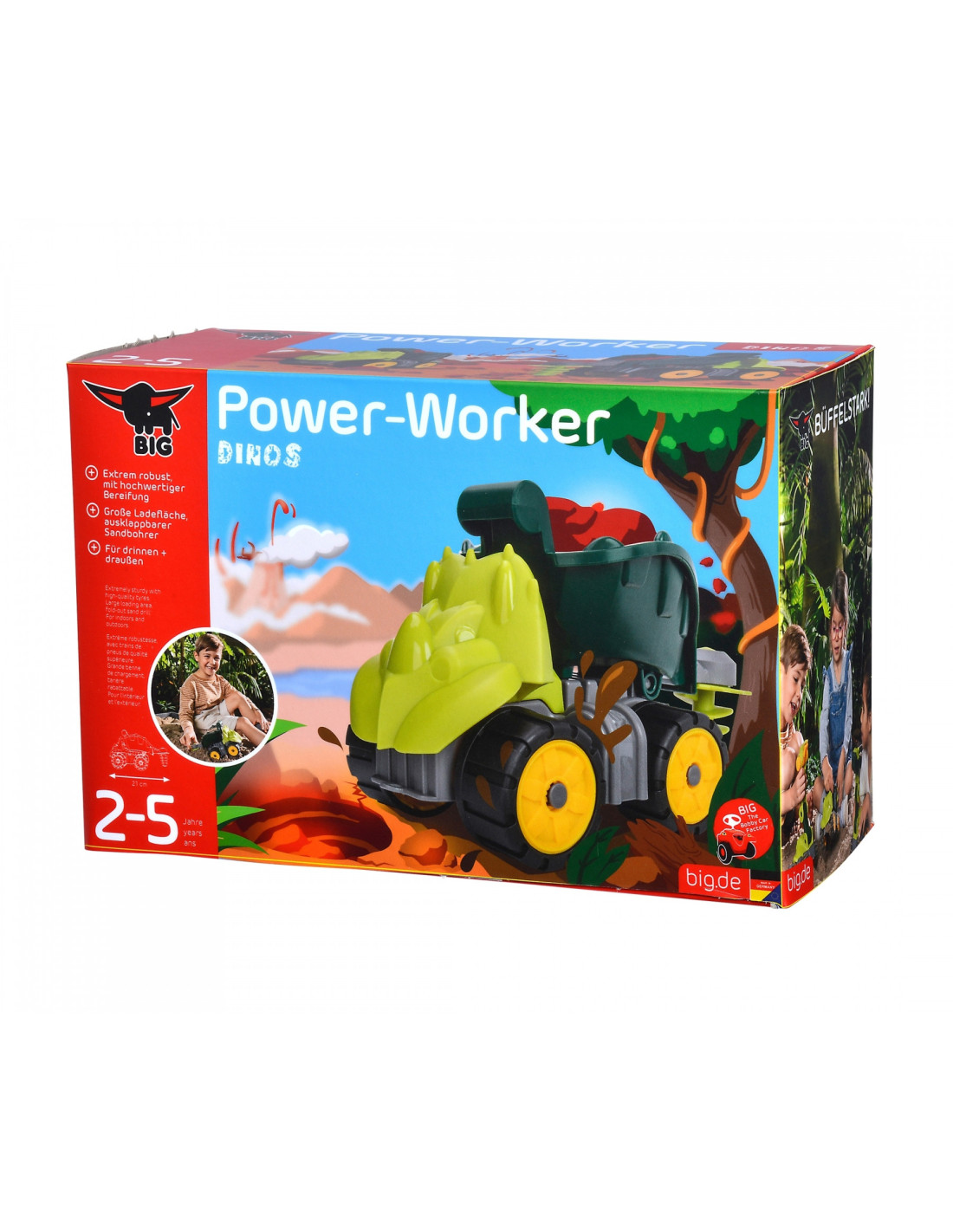 The Power Worker Dinosaur Dumper from the renowned BIG brand is a great toy for playing at home and in the garden. Thanks to the foldable sand drill attachment and the large, tilting loading surface with filler opening, you can effortlessly transport sand, toys, and more. Power Workers are made of high-quality plastic, making them particularly easy to clean. A special feature are the durable wheels made of a softer plastic , which come standard with all BIG Power Workers. They leave no marks and are therefore ideal for play in the children's room and outdoors.