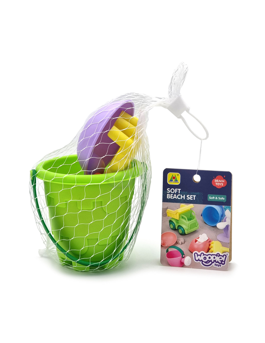 The WOOPIE Sand Bucket Set is a great addition to any sandbox or even garden. The set includes four pieces : a bucket, a mold, a shovel, and a rake. It features a beautiful pastel design . The bucket has a convenient carrying handle . Guaranteed fun in the sandbox , on the beach , or even in the garden !