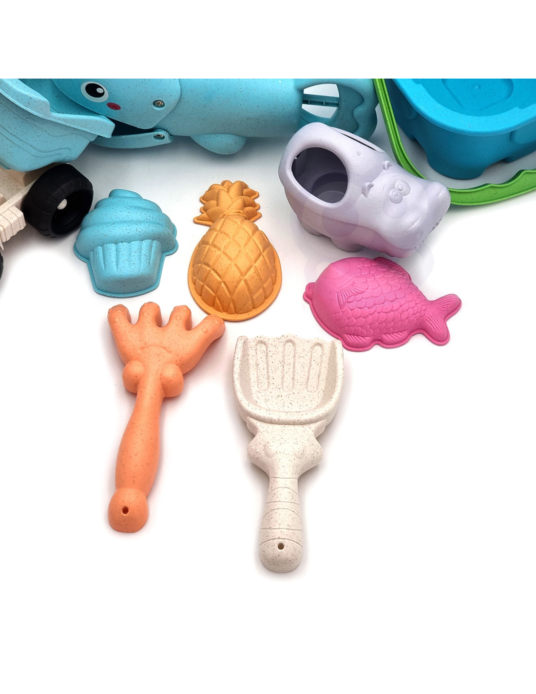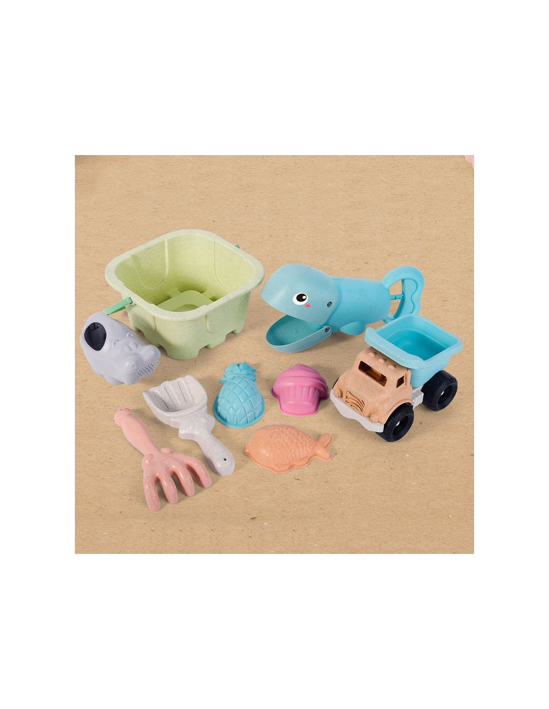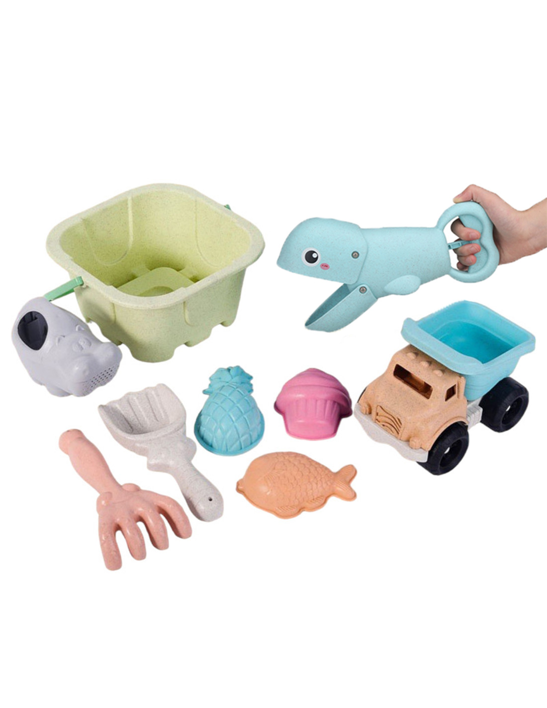 WOOPIE GREEN Sand Bucket Set with Shovel and Sand Grabber + Tipper 9 pcs. BIODEGRADABLE ORGANIC MATERIAL