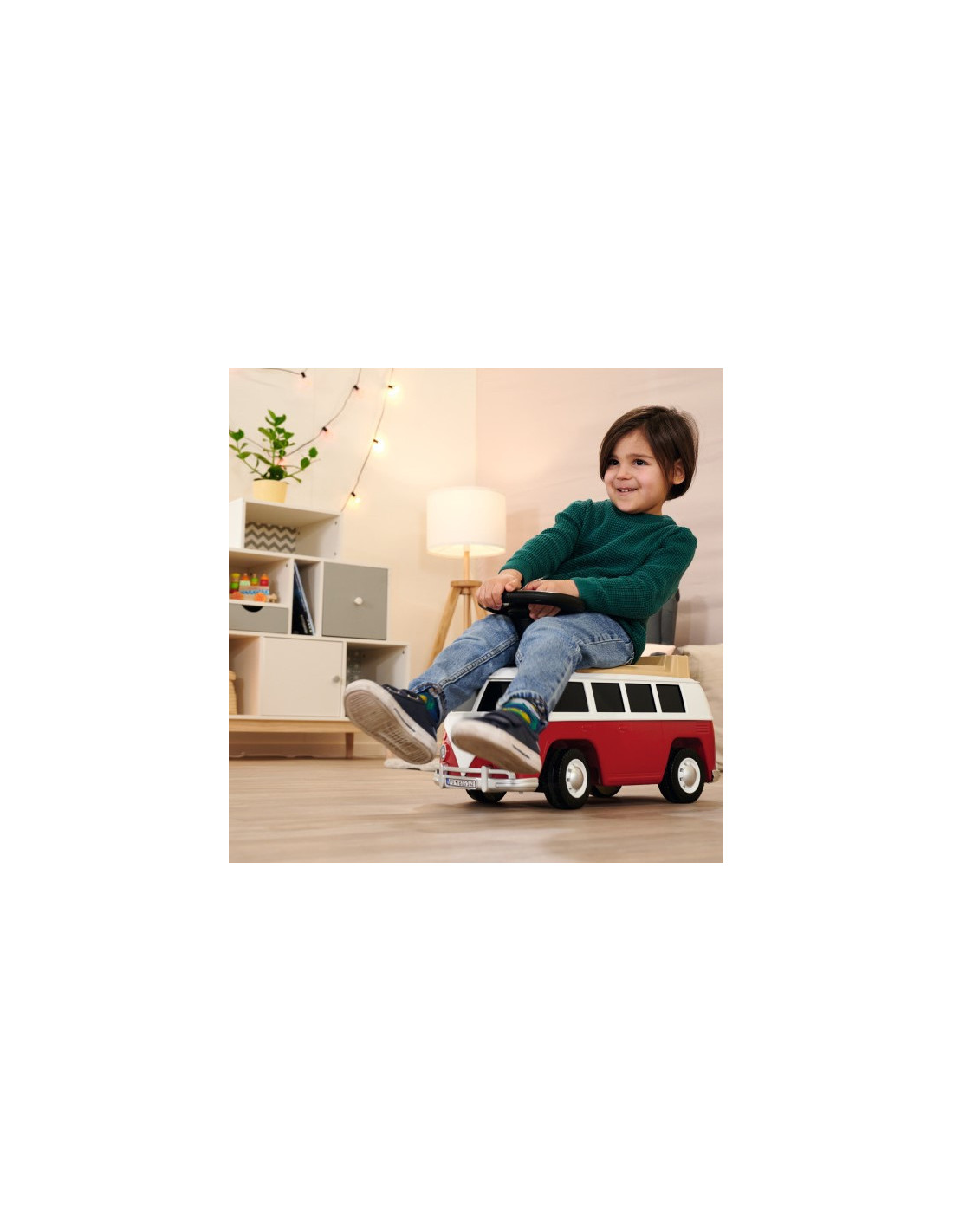 The Ride-On Van from the renowned BIG company is a vehicle resembling a real Volkswagen . It's stable and safe – perfect for children just starting their adventure with vehicles. The removable roof reveals a spacious interior that provides enough space for play figures and dolls up to 12 cm tall. They can accompany little adventurers on their trips and are always ready to keep them company during short rest breaks. The van is also equipped with high-quality , quiet wheels , which are especially popular with parents and allow little drivers to cruise around gardens and children's rooms. Thanks to the exceptionally soft, non-marking plastic tires, there's no risk of leaving marks on the floor, making the ride-on ideal for indoor use. The ride-on is built so that children can try out and develop new skills – getting on, off, pushing, and steering. It's an ideal gift for children aged 2 and over .
