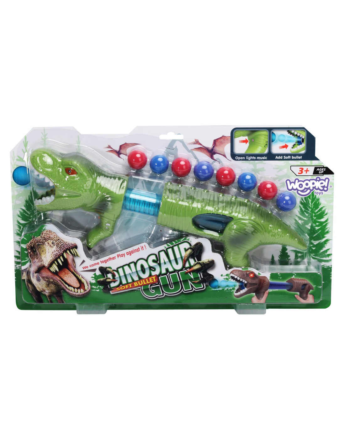 The WOOPIE Automatic Dinosaur Ball Gun is a fantastic way to entertain your child. This toy lets your child shoot and shoot at various targets . The toy is very easy to use. To load the launcher, insert a foam ball into the barrel, then stretch and fold the launcher. Children can organize target-shooting competitions on their own or with friends . The launcher impresses with its sound and light functions , activated by the press of a button (the "ROAR!" scream and the dinosaur's glowing eyes). The dinosaur is lightweight and easily portable . It can be used anywhere, both at home and in the garden!