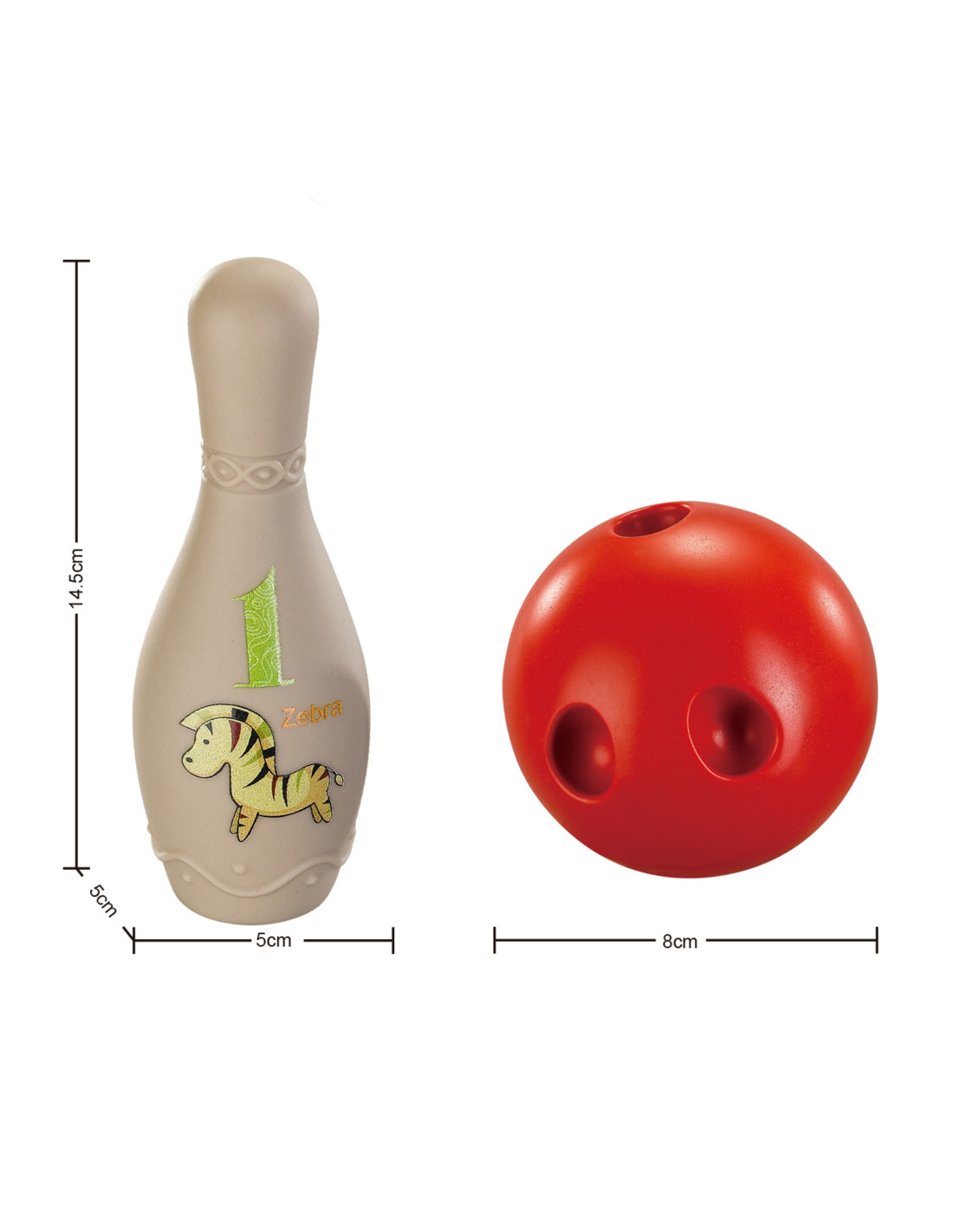 Woopie 's colorful sensory bowling pins are everything children need to develop their motor skills while having fun . The set includes 6 pins and 2 soft- touch balls. We don't need to convince you that bowling will be great fun for your little one, but it will also provide many educational benefits. The pins can be squeezed and have surfaces with various patterns to stimulate their sensory and tactile senses . This toy develops your child's motor skills through activities such as running and throwing .