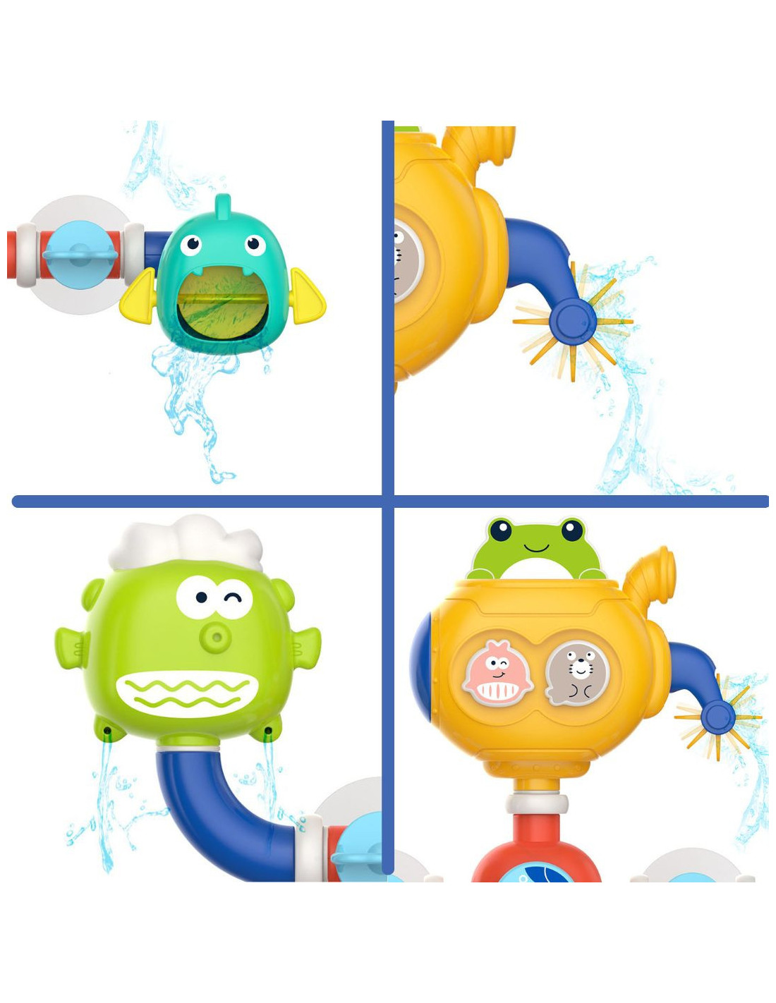 The WOOPIE Robot Bath Toy will provide a fun bath time for your child. Using a cup, the child pours water into the robot's head. Once the water is poured, elements such as paddles and fountains will be activated , depending on the valve configuration. The toy has three valves that control the water flow, teaching the child the principles of physics and logical thinking . The robot is not only a great toy but also helps parents bathe their little one while the child is busy playing.