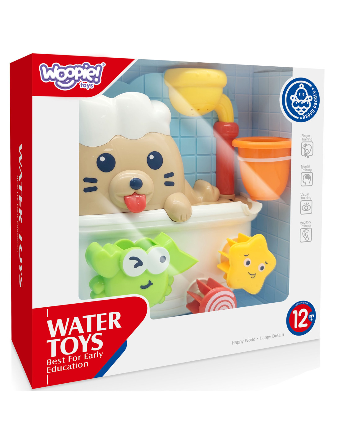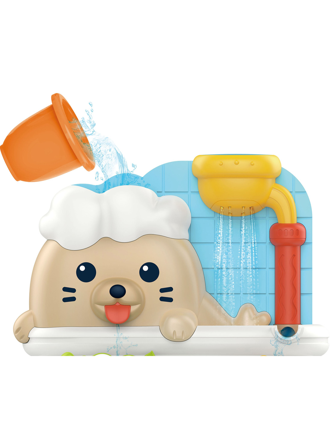 The Seal in the Bathtub bath toy from WOOPIE will provide a fun bath time for your child. Using a cup, the child pours water into the seal's hat or into the shower. As the water is poured, the star will spin or the crab will move, depending on where it's poured. Additionally, it has three suction cups on its back, allowing it to be attached to a bathroom wall or bathtub. This toy will not only make bath time more enjoyable, but also develop your child's imagination, manual dexterity , and awareness of the world around them . Above all, it will help your child concentrate and stay occupied while washing.