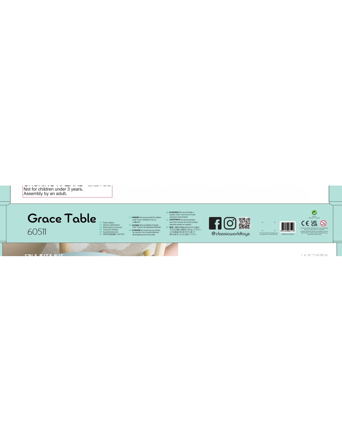 The Grace table from CLASSIC WORLD is the perfect table whose pastel design will complement any child's room. Simple , lightweight , and compact – designed with children in mind, it provides a space for hours of creative play! Eco- friendly !