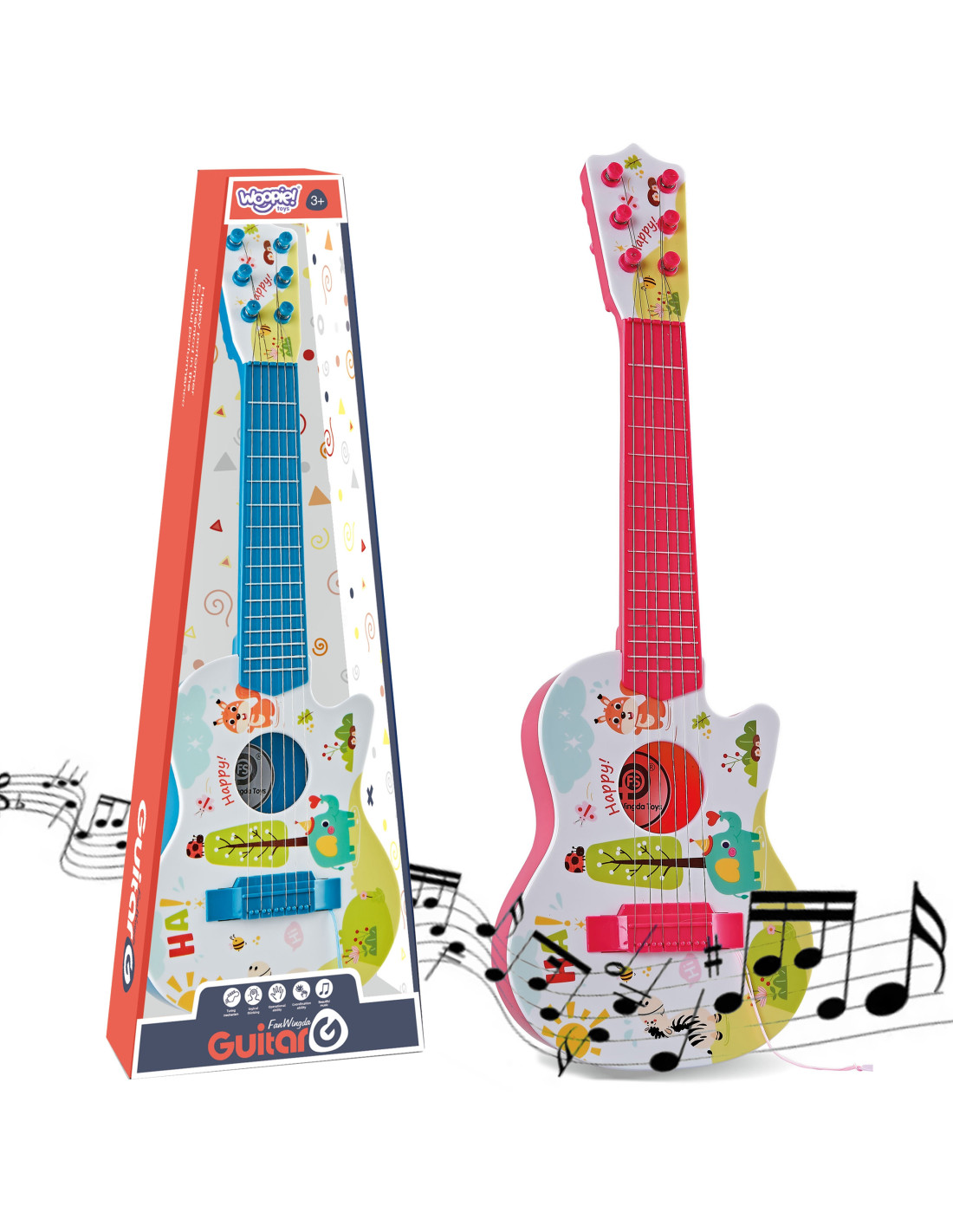 The Woopie guitar from the renowned company is a fantastic, colorful musical instrument for children with a beautiful animal design. This instrument allows them to master their first chords, develop their passion, and with a little patience and imagination, even play a home concert. It's a perfect product for exploring children's early fascinations with the world of music. Little fingers practice running along the fretboard, which significantly improves manual dexterity and teaches concentration and perseverance. It perfectly imitates a real instrument. A true hit in the fun-through-learning category.