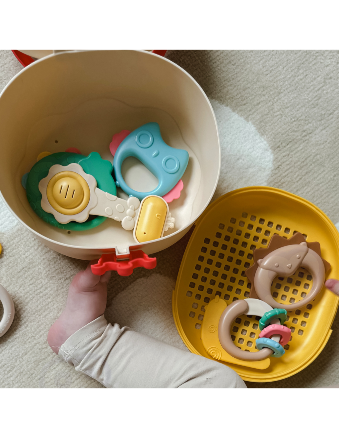 The WOOPIE Soft Rattles with Box Set is a collection of toys that entertain and develop babies' skills . Each piece in this set is made to be safe and comfortable for little hands to hold, offering a variety of textures, shapes, and colors that will stimulate sensory development. Each piece in this set is carefully designed to not only entertain but also support babies' holistic development, making it an essential addition to their play repertoire.
