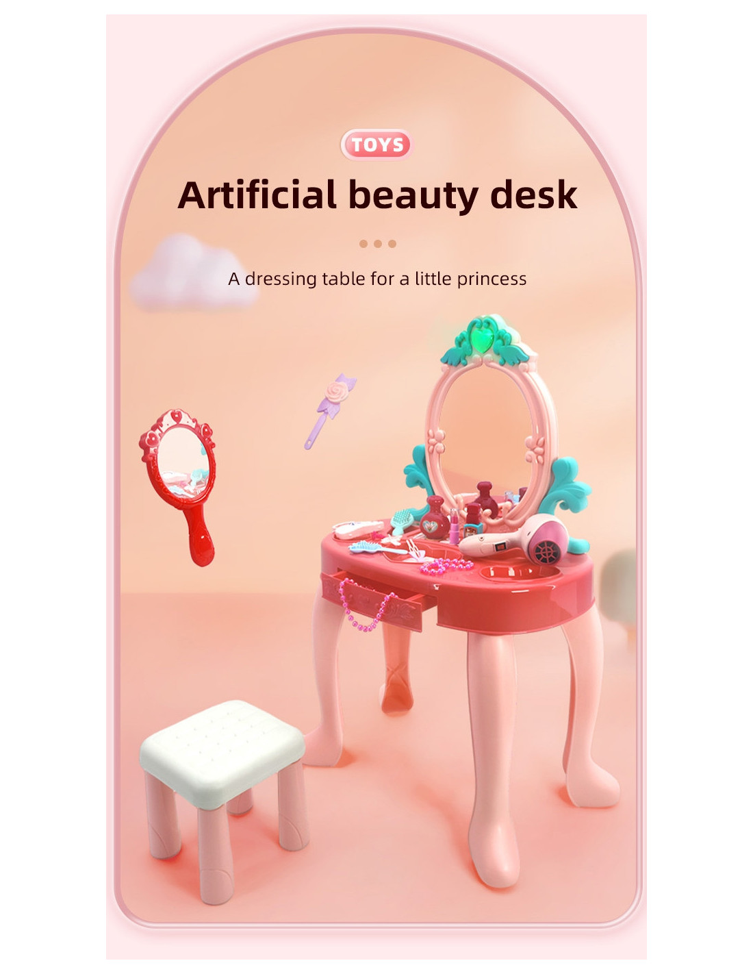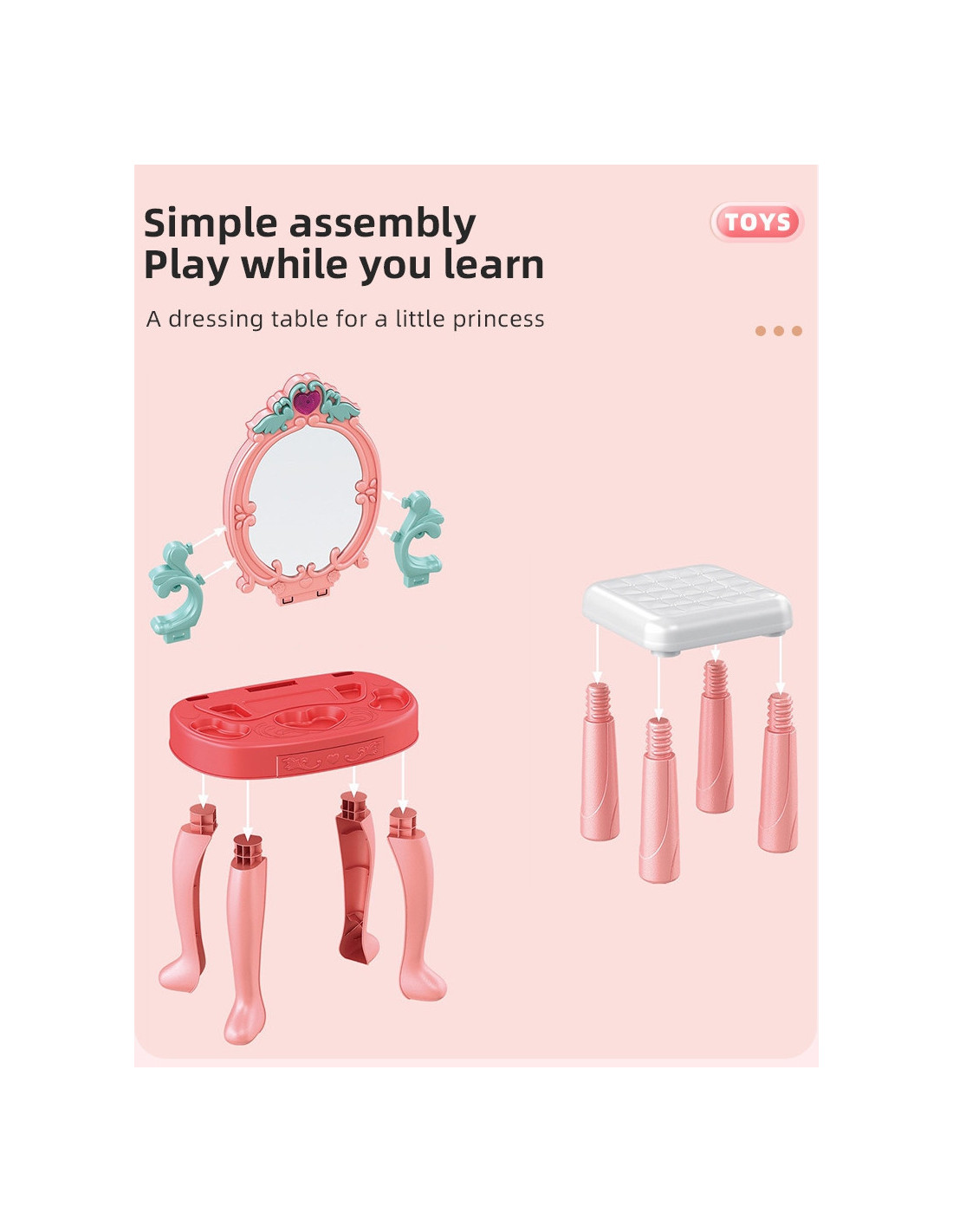- - the dressing table comes with a stool on which the child can sit comfortably while playing,
