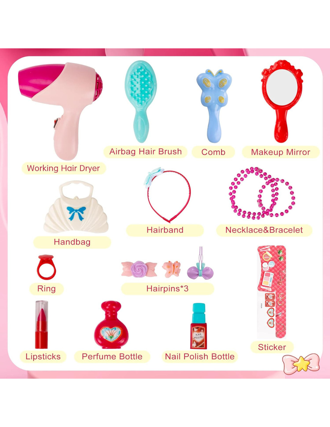 - - the set contains as many as 28 elements, including a battery-powered dryer that works like a real dryer