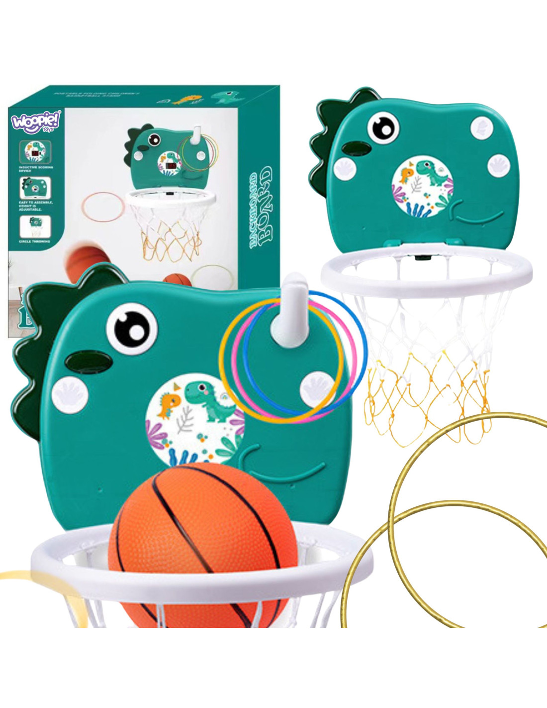 WOOPIE Dinosaur Basketball Set Portable 2-in-1 Ringo Arcade Game