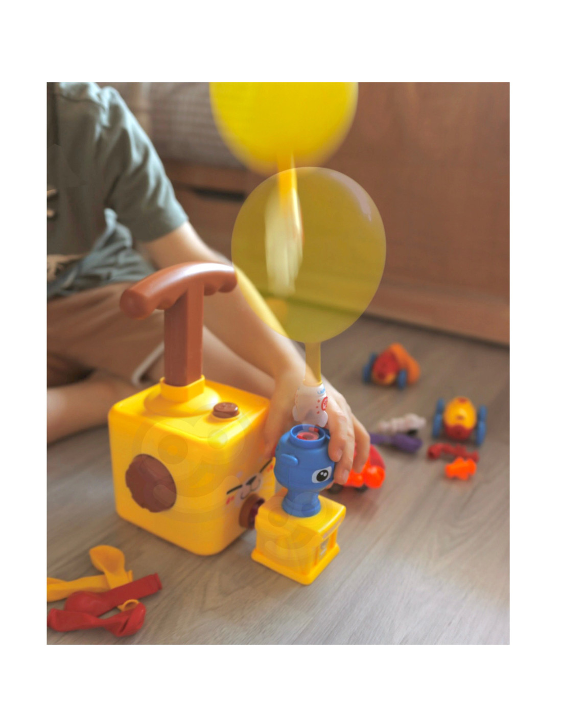 The balloon launcher from the WOOPIE brand is a modern toy that brings a lot of joy to both children and their parents! The balloon launcher operates very simply. All elements of the set are crafted with attention to every detail , made of high-quality, durable plastic. Playing with the aerodynamic set involves inflating the balloons with a pump and watching the balloons attached to the cars fly away , gaining speed thanks to the air from the inflated balloon. The set is educational because it introduces children to the world of science. The balloon cars are air-powered, demonstrating the laws of physics to children . The toy does not require batteries or other electrical energy.