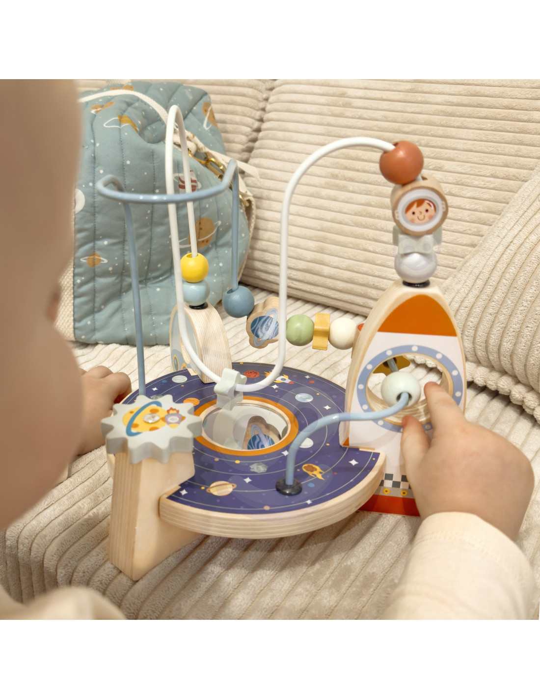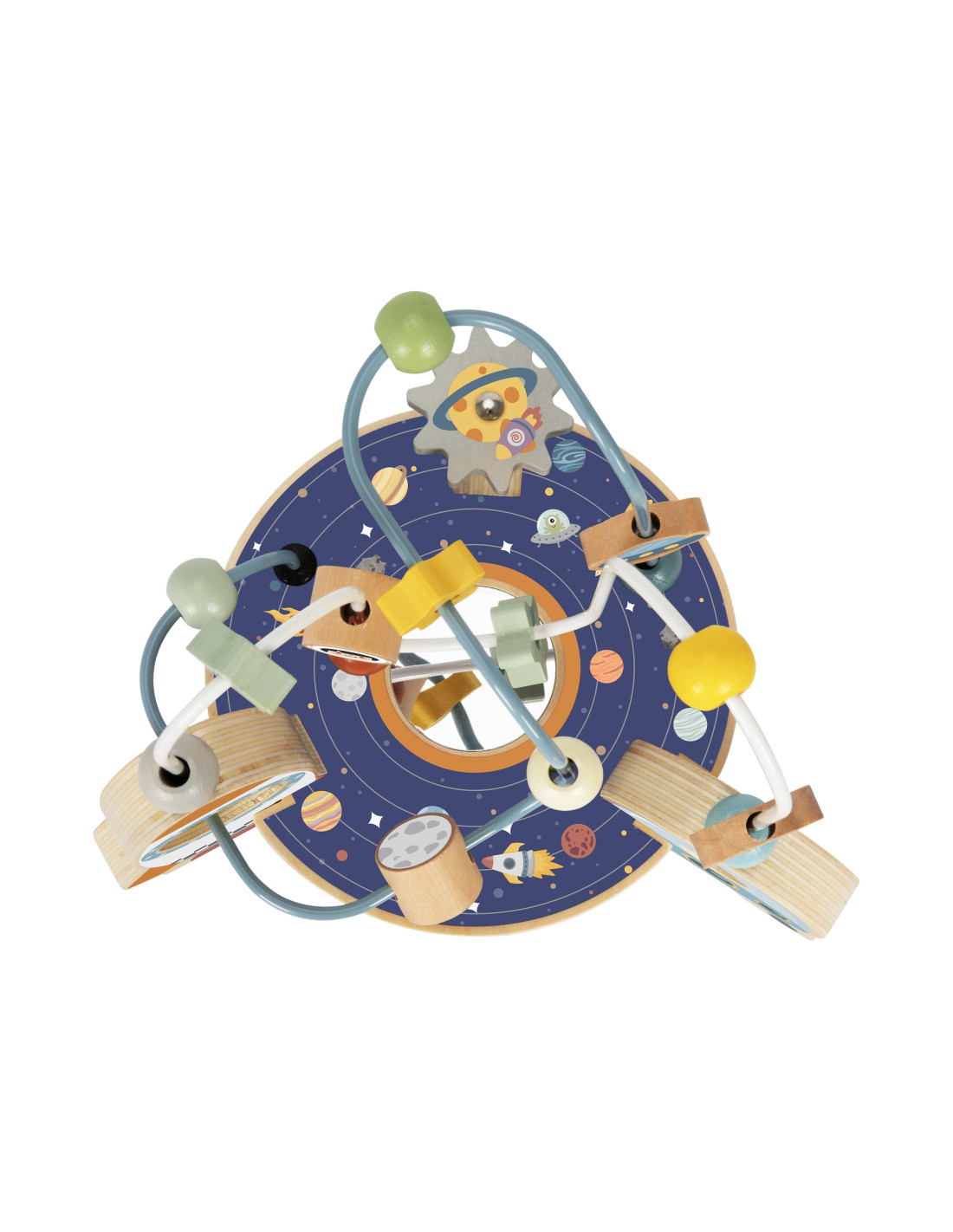 - - Movable elements: Beads, stars and planets on loops that the child can move