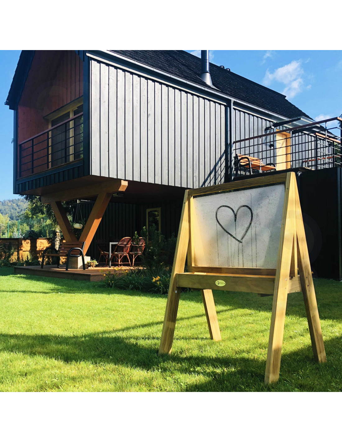 Duża drewniana Sztaluga dla wszystkich początkujących małych artystów, tablica renomowanej marki Classic World jest świetnym prezentem. Idealne do doskonalenia umiejętności motorycznych, ćwiczenia rysowania, malowania i ćwiczenia pisania liter. Produkt jest wyprodukowany z wysokiej jakości drewna, pomalowany nietoksycznym impregnatem, w pełni bezpiecznym dla dzieci. Tablica buduje umiejętności motoryczne, wzmacnia kreatywność dziecka. Solidna, drewniana konstrukcja zapewnia dłuższą żywotność produktu. Sztaluga posiada dwustronną pleksę, która daje możliwość malowania po obu stronach. Na półce pod tablicą znajduje się pojemnik, do którego można wstawić farby, w celu ułatwienia malowania.