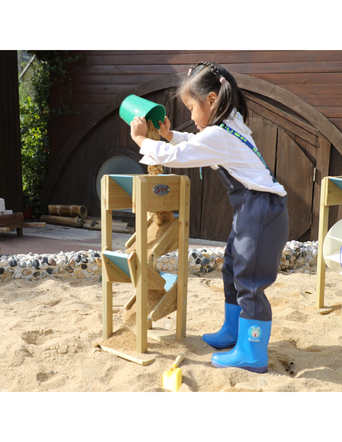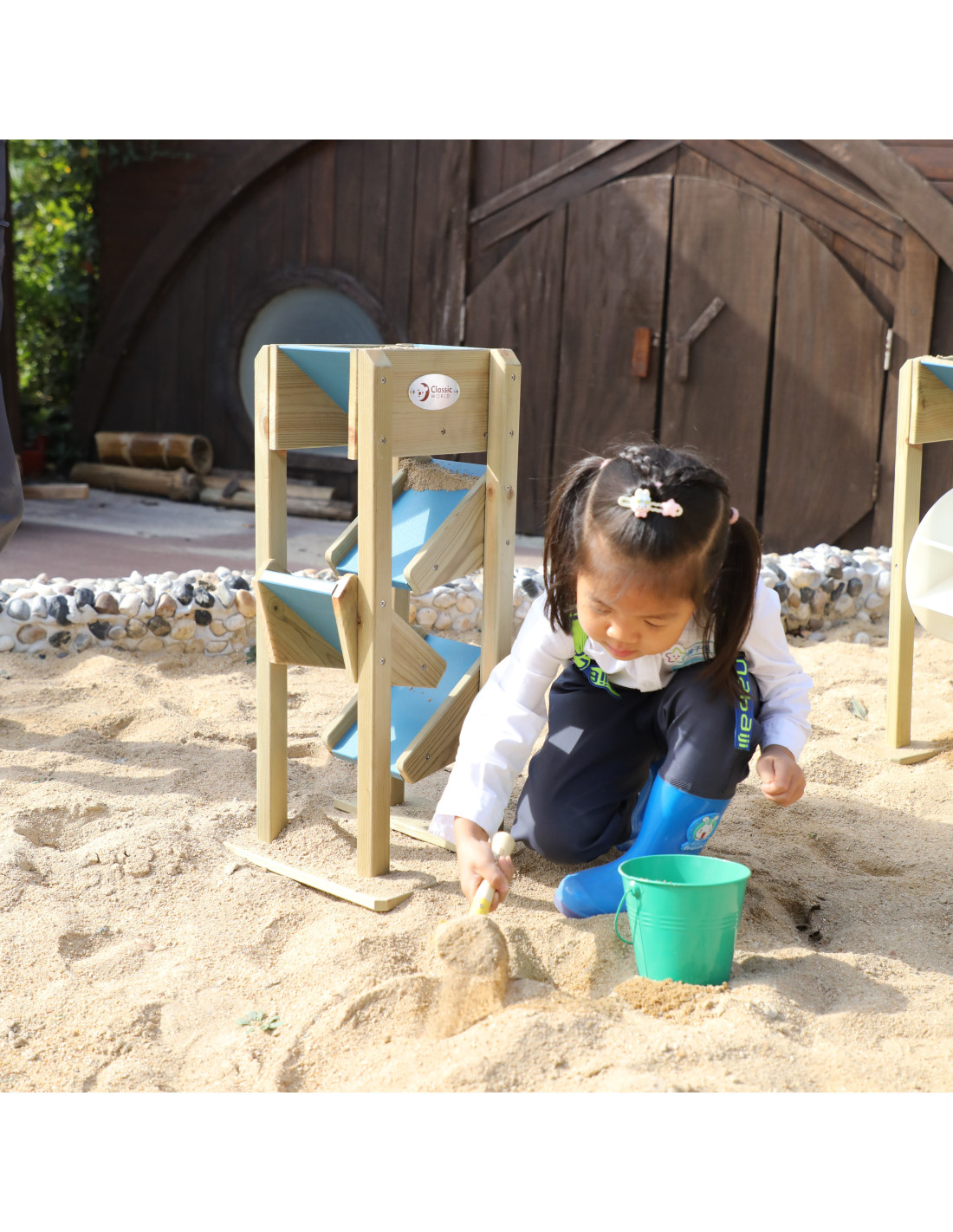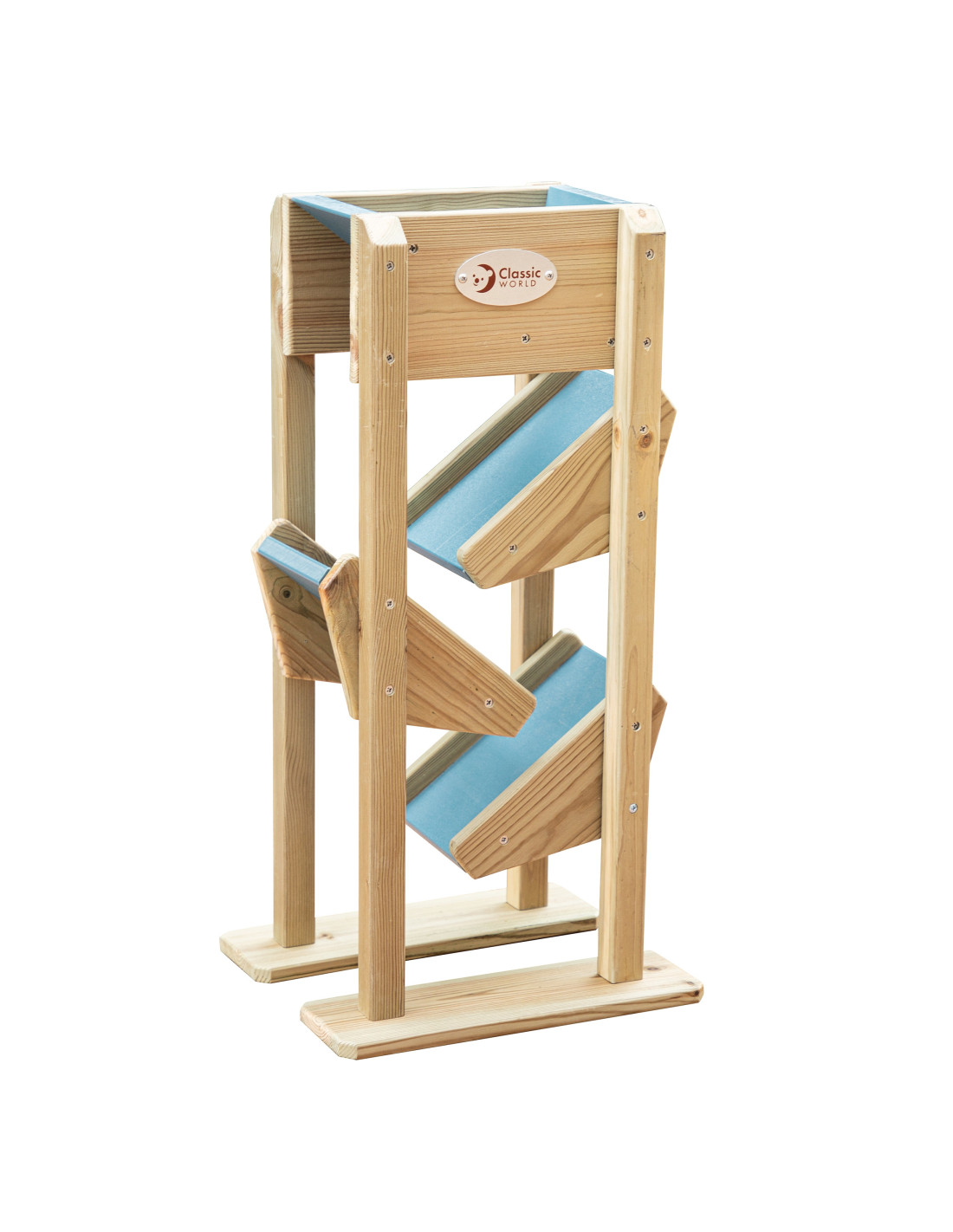 The Wooden Sand Slide from CLASSIC WORLD is a high-quality toy that will perfectly complement your child's sandbox, as well as playgrounds in educational institutions. It consists of a funnel at the top into which the child pours sand, which then flows down three small slides. Using this wooden slide is a great sensory activity for children, which is beneficial for developing fine motor skills .