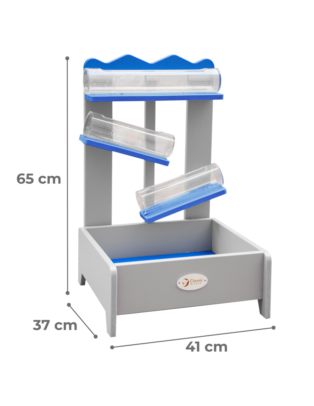 The Water Toy for Kids from the renowned Classic World brand is a great experiment kit for your child's sandbox and also for educational institutions. Simply fill the trough with water and watch as the water flows through the small hole from one to the other, creating a mini pool. Water drips from the top transparent tube and flows down the length of the trough.