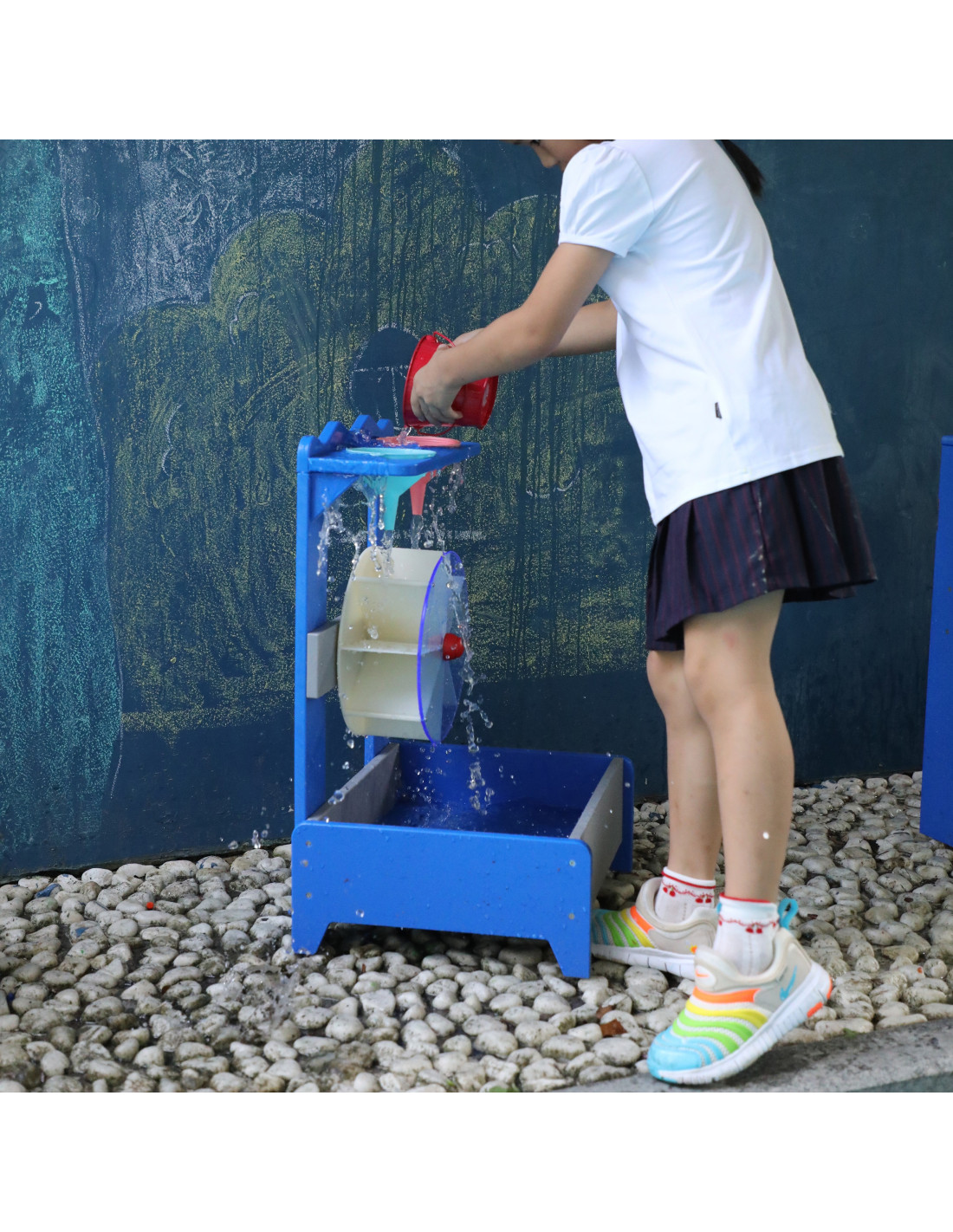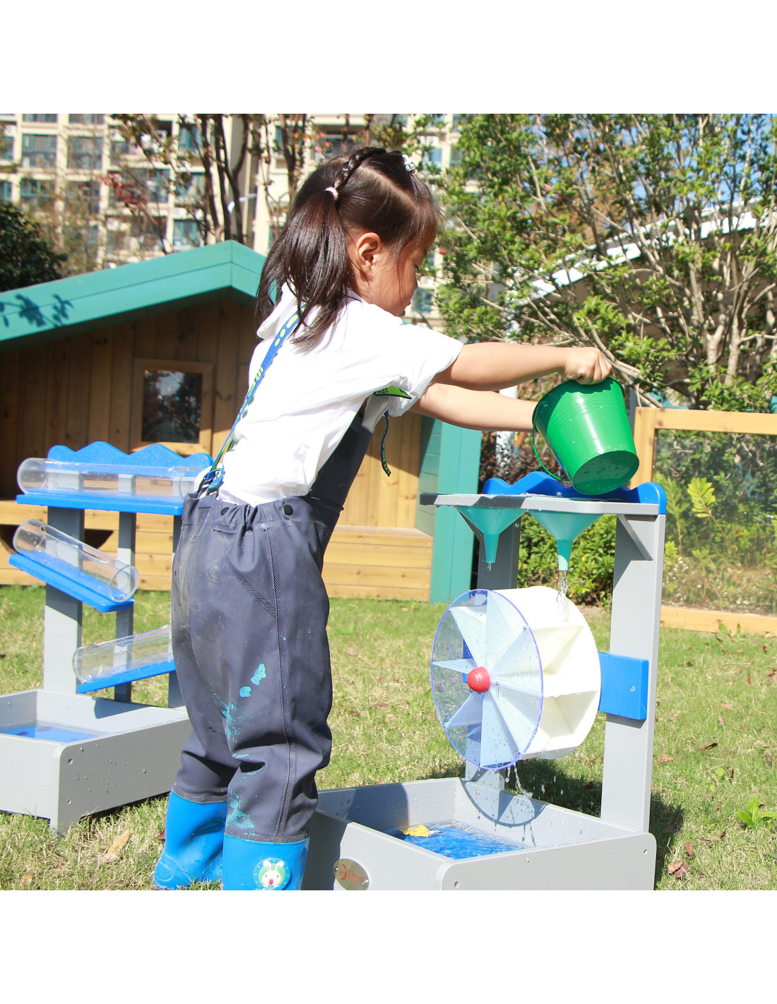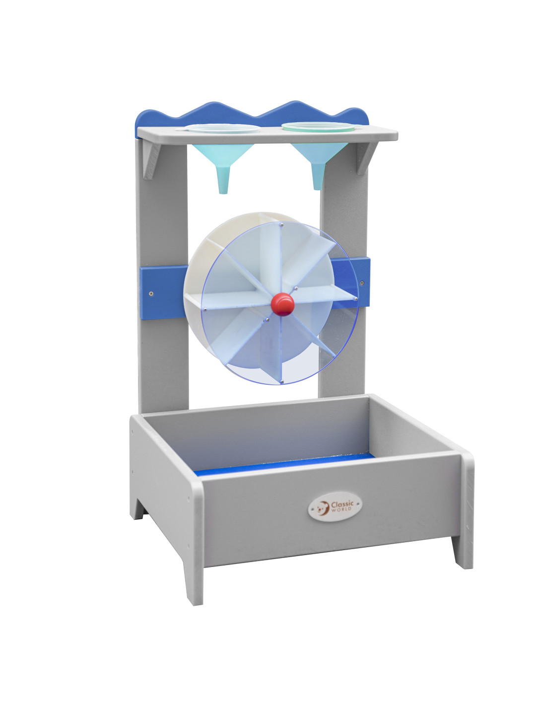 The Water Toy for Kids from the renowned Classic World brand is the perfect addition to your sandbox! Painted with a non-toxic, child-safe impregnation , simply fill the funnels with water and watch it flow into the spinning wheel . Equipped with two funnels at the top, water flows through them, driving the wheel's rotation. This toy encourages children to be creative and explore . The choice of funnels determines the direction of the wheel's rotation: clockwise or counterclockwise.