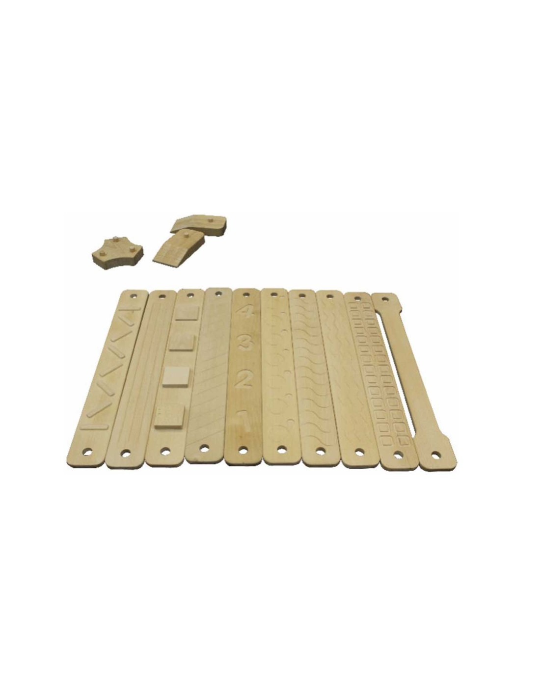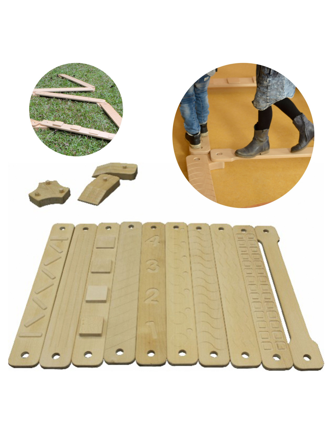 An educational sensory toy for children, this set of wooden paths helps develop balance and dexterity . The path can be assembled in any configuration, so play can be different every time. Each piece has a different cutout pattern, allowing children to experience different sensations and sensations on their feet. All edges are rounded, making play completely safe for children .