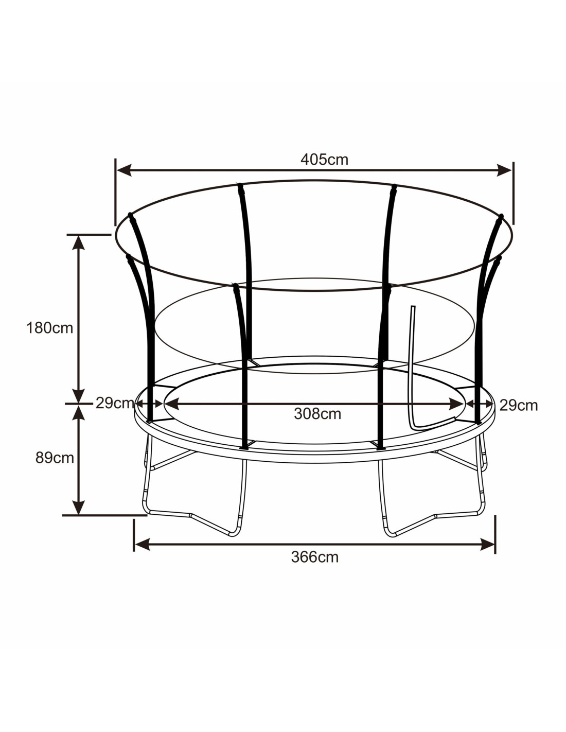 - The trampoline has a diameter of 366 cm and is equipped with a solid safety net, ensuring maximum fun and safety while playing outdoors