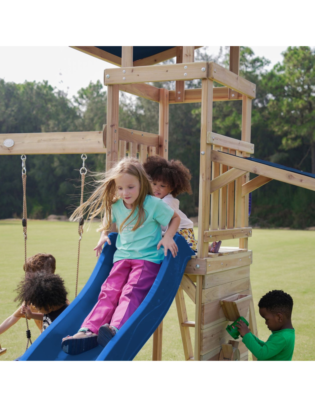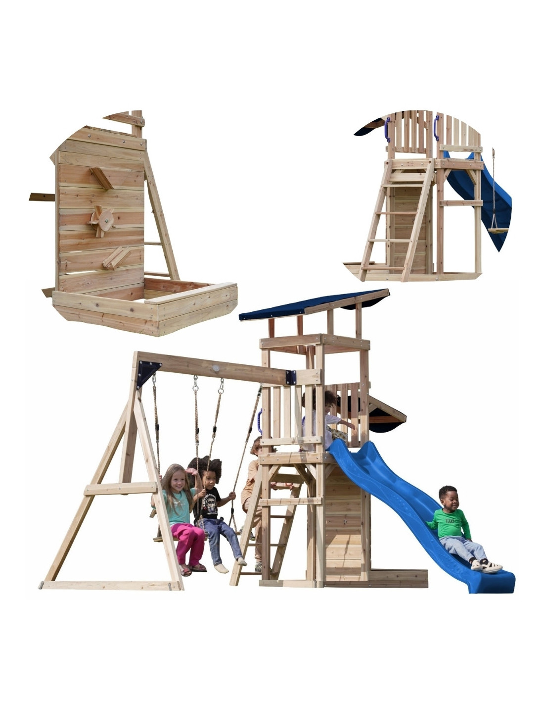 - Multifunctional play set – climbing, sliding, swinging and playing in the sand all in one place!