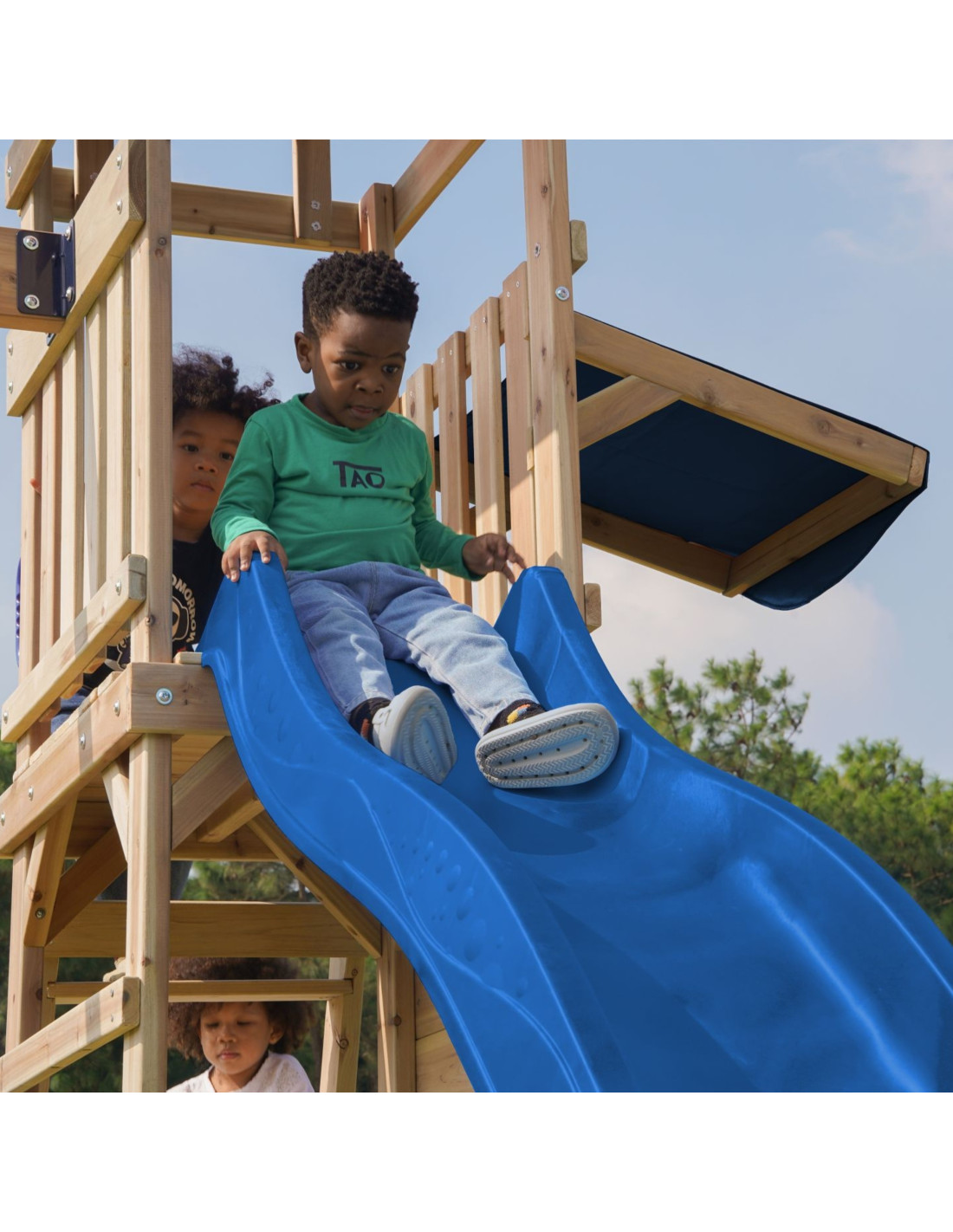 ✔ Thanks to a variety of elements – an observation tower, a long slide, a double swing and a sandbox – children can develop their creativity, strength and motor coordination in one place!