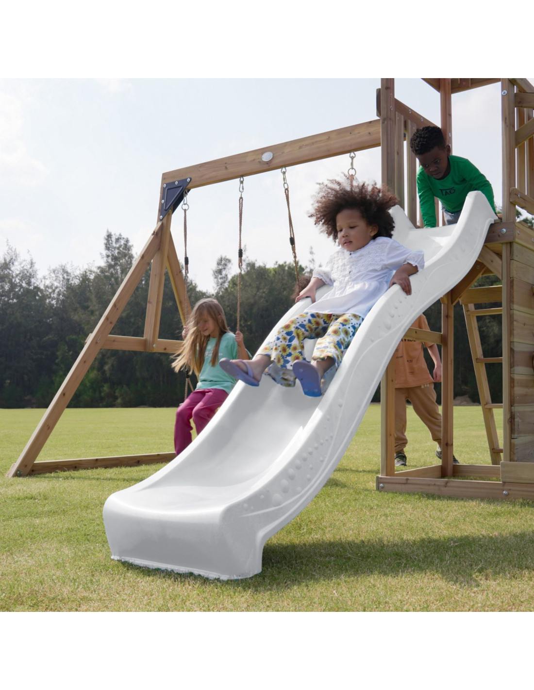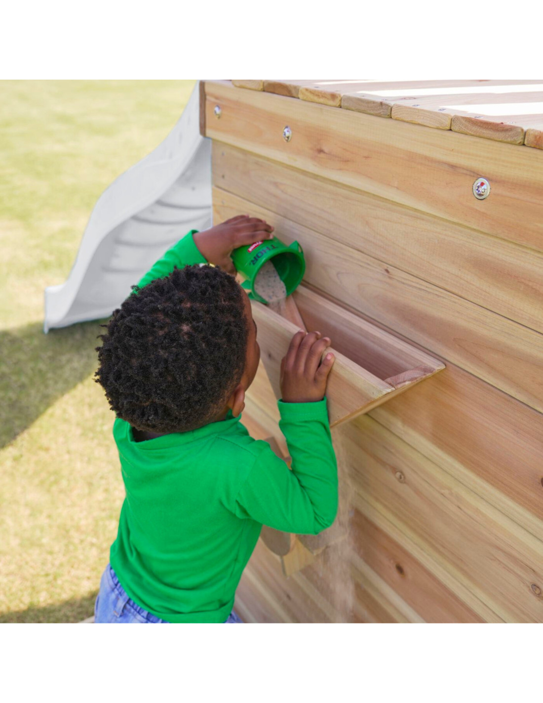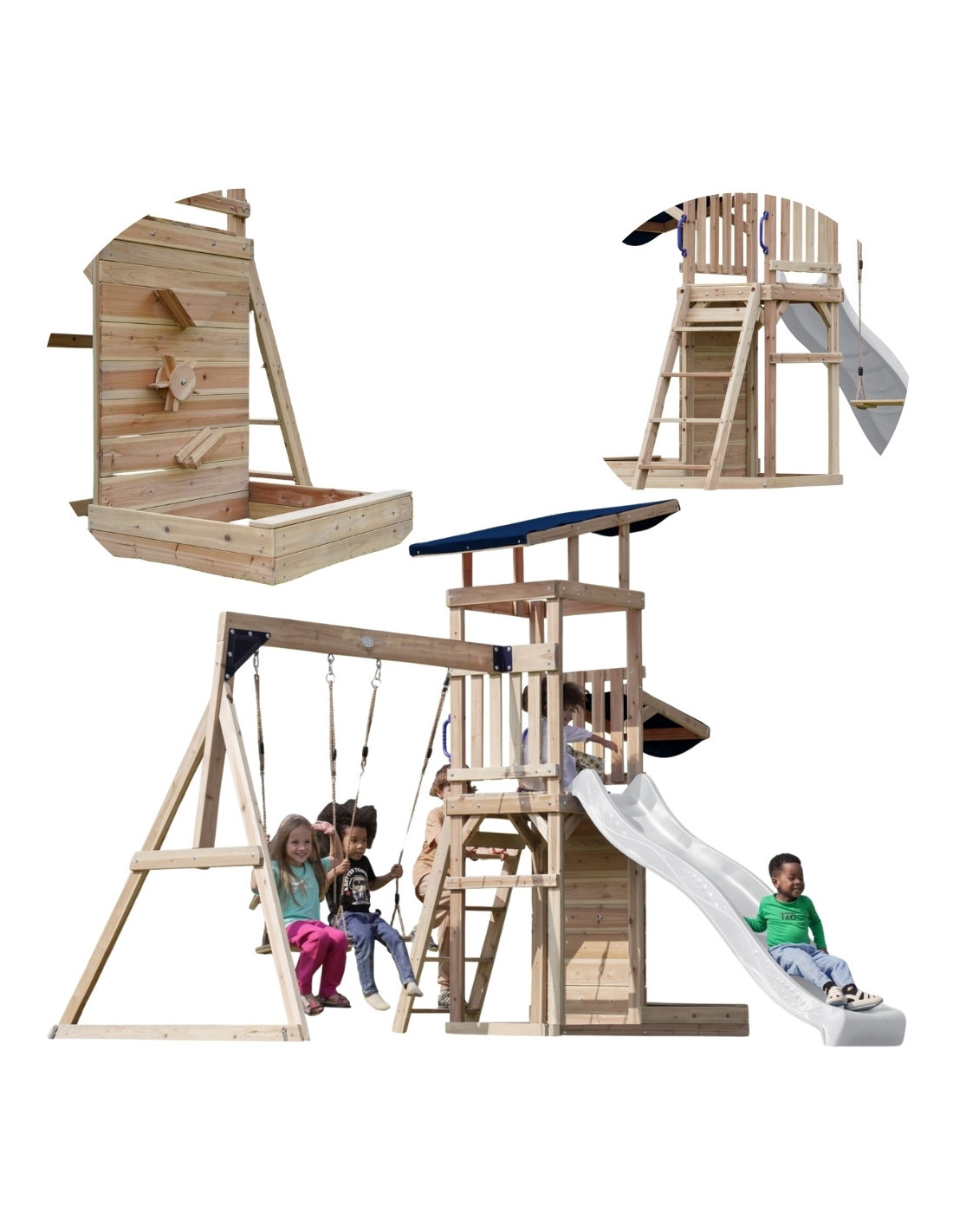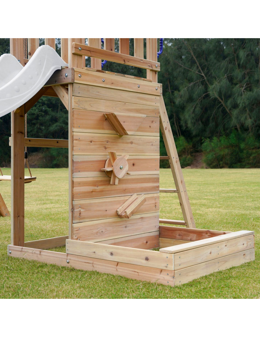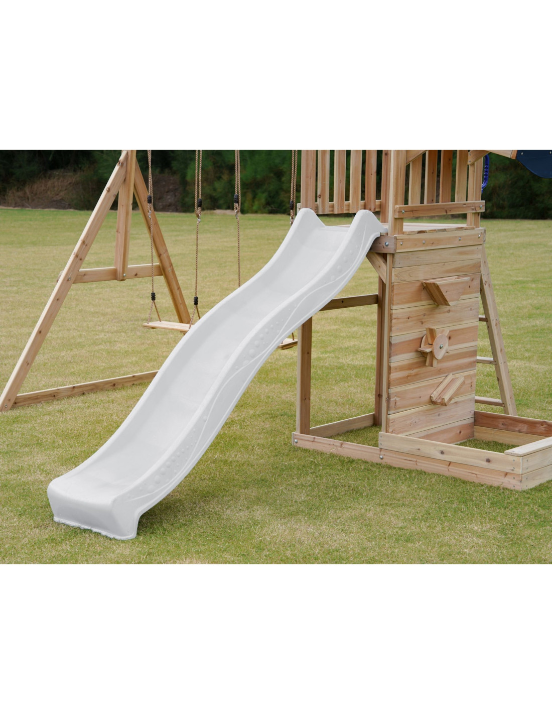 - Multifunctional play set – climbing, sliding, swinging and playing in the sand all in one place!