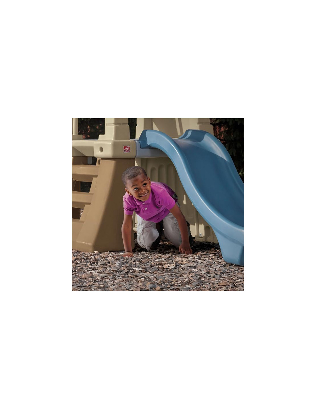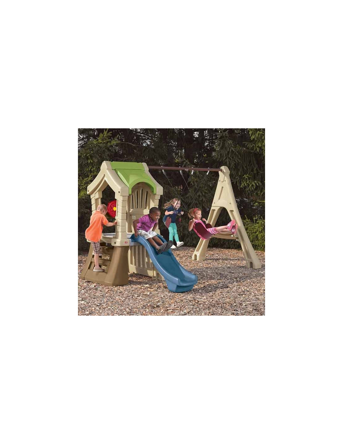 - - The playground includes: a ladder and a 130 cm long slide , two swings, and a steering wheel.