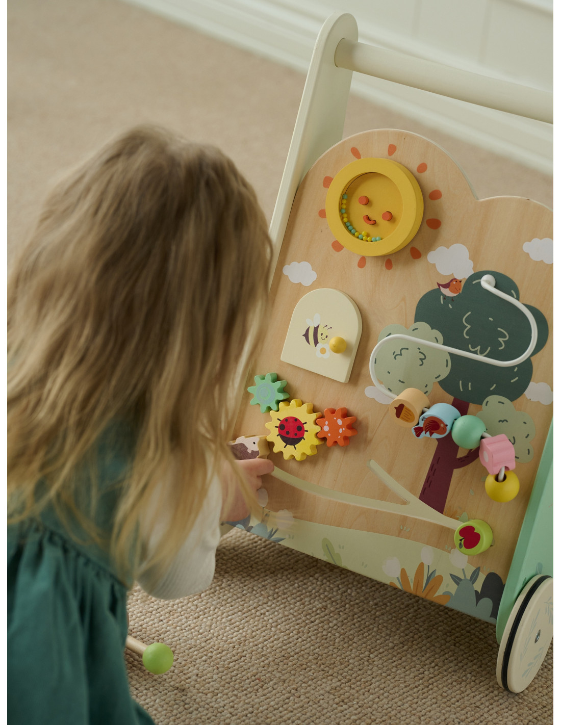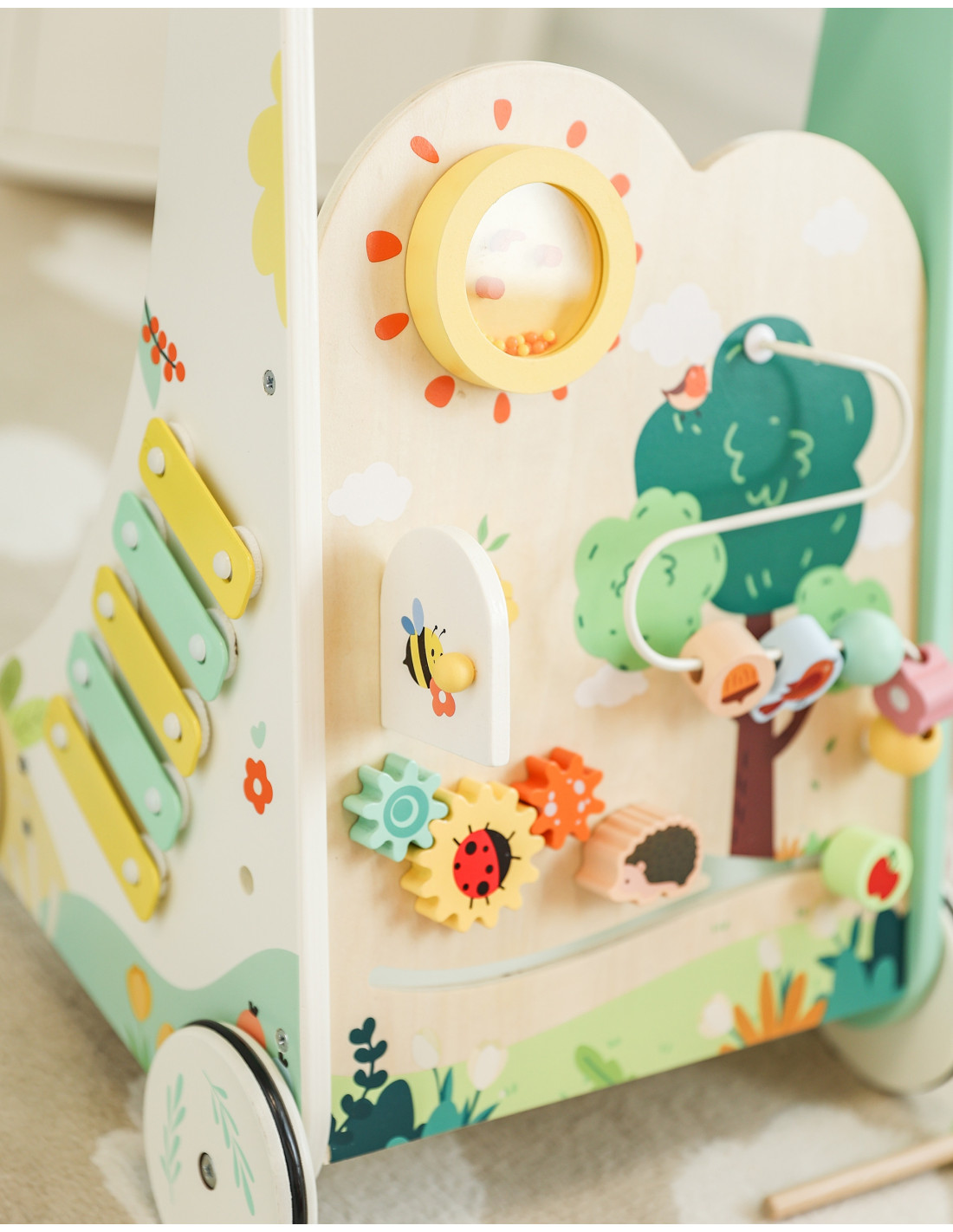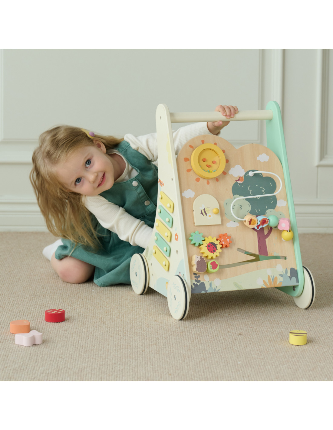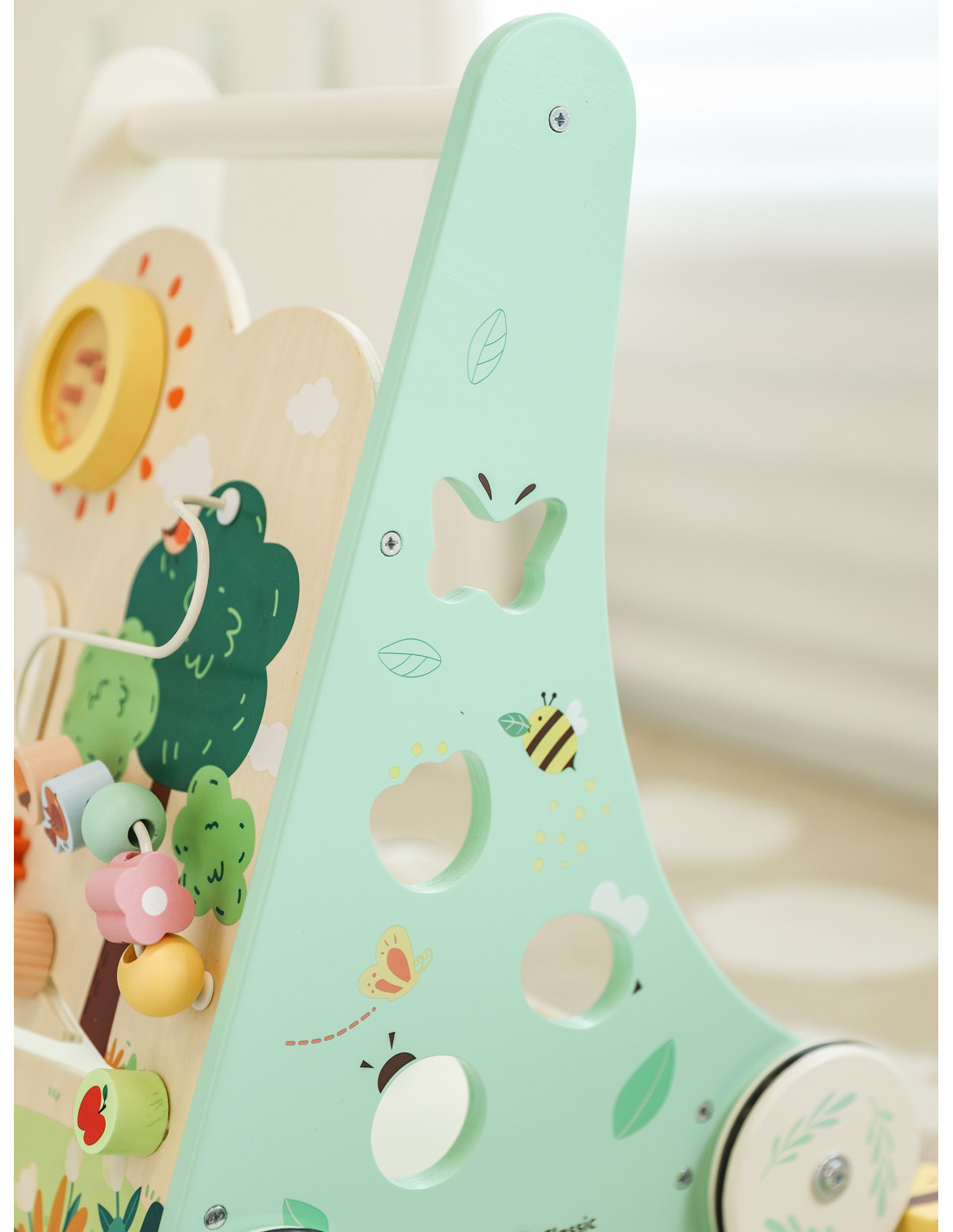 Let your child discover a world full of magic and learning with the "Forest Walker" from the renowned brand Classic World. This wooden walker is designed to support your child's first steps while developing their senses and motor skills. With every move of a bead, turn of a gear, or strike of a cymbal, your little one learns how the world around them works, while simultaneously strengthening their hands and coordination . The walker will accompany your child as they take their first steps. Made of wood, the toy is stable, providing a sense of security. The walker has rubber seals on the wheels for easy and quiet maneuverability. The elements are painted with child-safe paints in beautiful colors that will delight every user and provide plenty of fun.