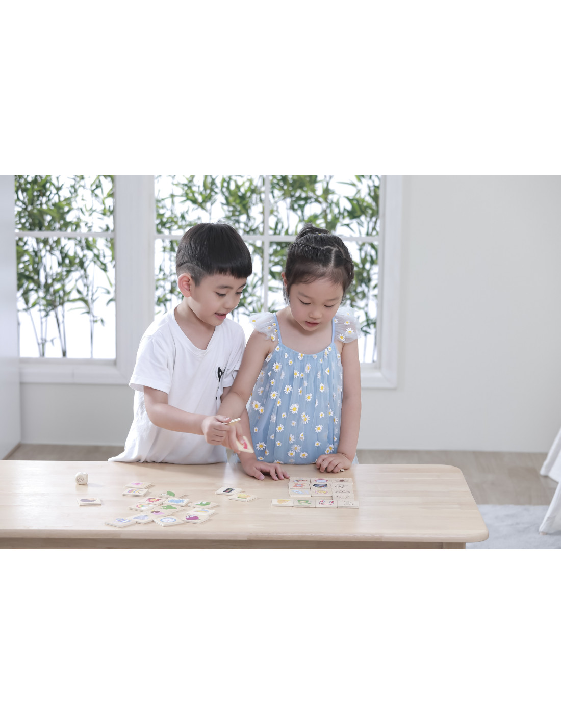 A wooden puzzle for learning and sorting the senses . The child's task is to assign objects to selected senses. The images depict many everyday objects, such as a teddy bear and a car. The entire puzzle is made of wood and painted with non-toxic paints. The included instructions suggest variations for one or more players, and at varying difficulty levels.