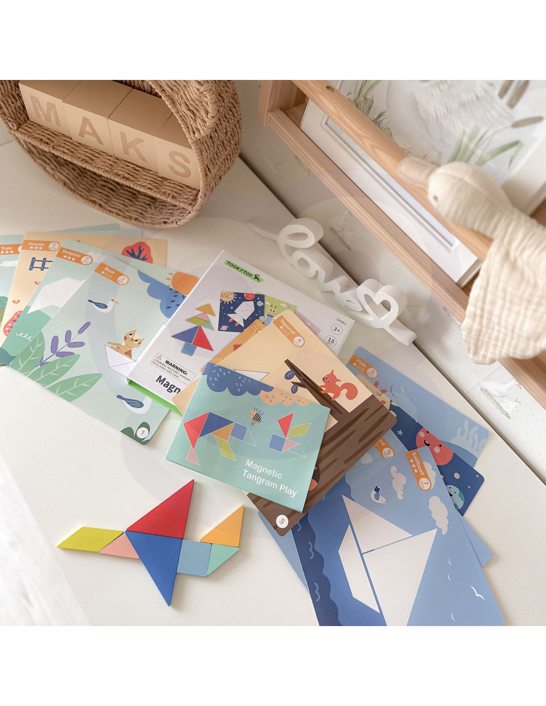 The Tooky Toy Shape Puzzle will provide tons of fun while supporting the intellectual development of young children. The vibrant colors and cheerful animal images will appeal to even the most discerning user. With this toy, your child can use magnetic geometric shapes to align the images on a special platform and assemble them into animals. The compact packaging makes them ideal for travel . By selecting the highest quality, eco-friendly materials, the manufacturer ensures the safety of children and the environment.