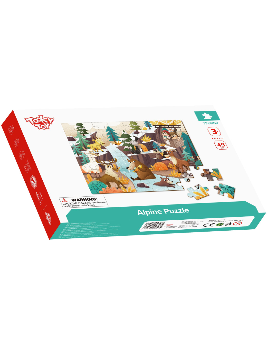 TOOKY TOY Puzzle z Woreczkiem Układanka Alpejskie Zwierzęta i Krajobraz 49 el.