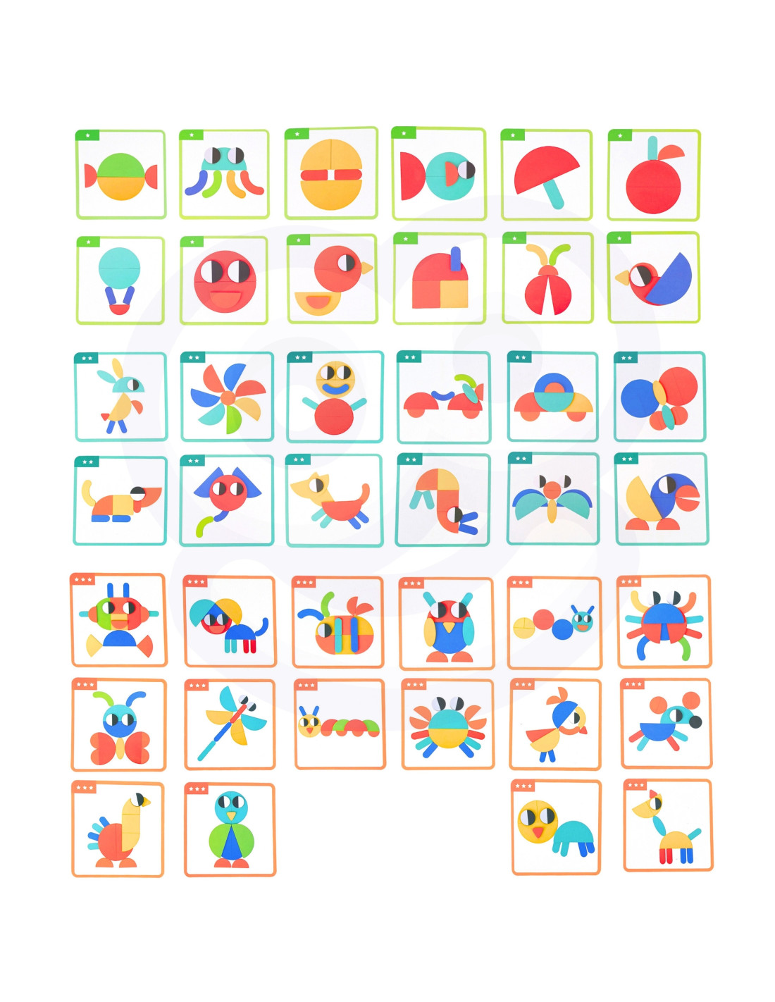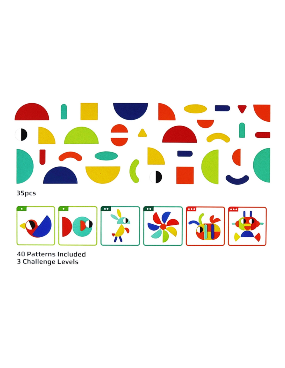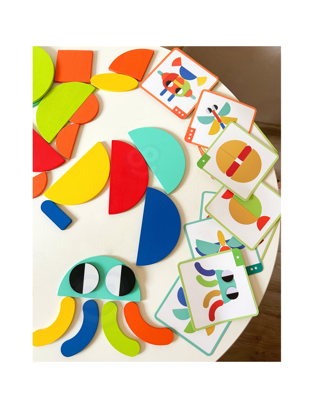 The WOOPIE GREEN Montessori Wooden Puzzle is the perfect educational toy for little explorers – a set of colorful blocks and cards with patterns that can be arranged, memorized, and even recreated! It's not only a great aid in learning shapes and colors, but also an amazing tool for developing concentration, memory, and creativity.