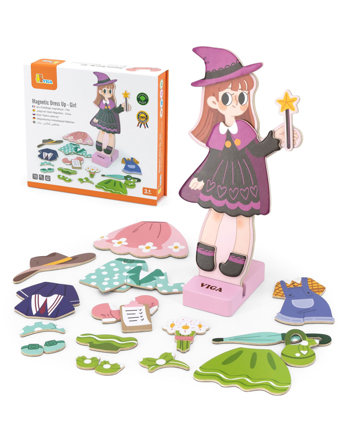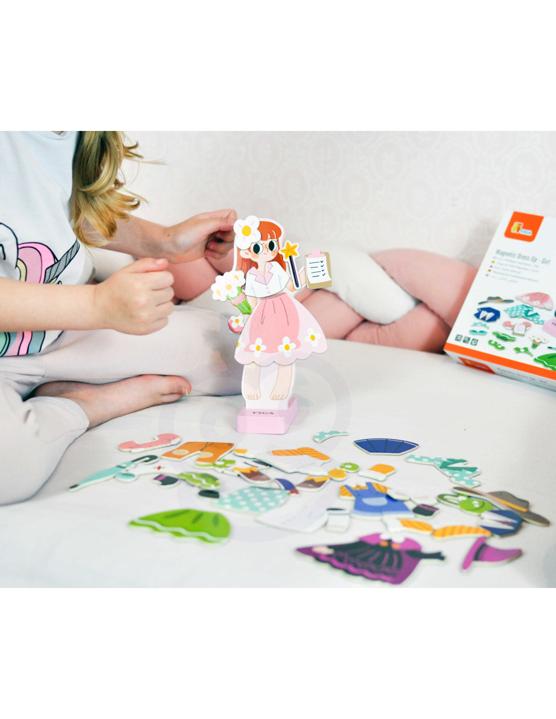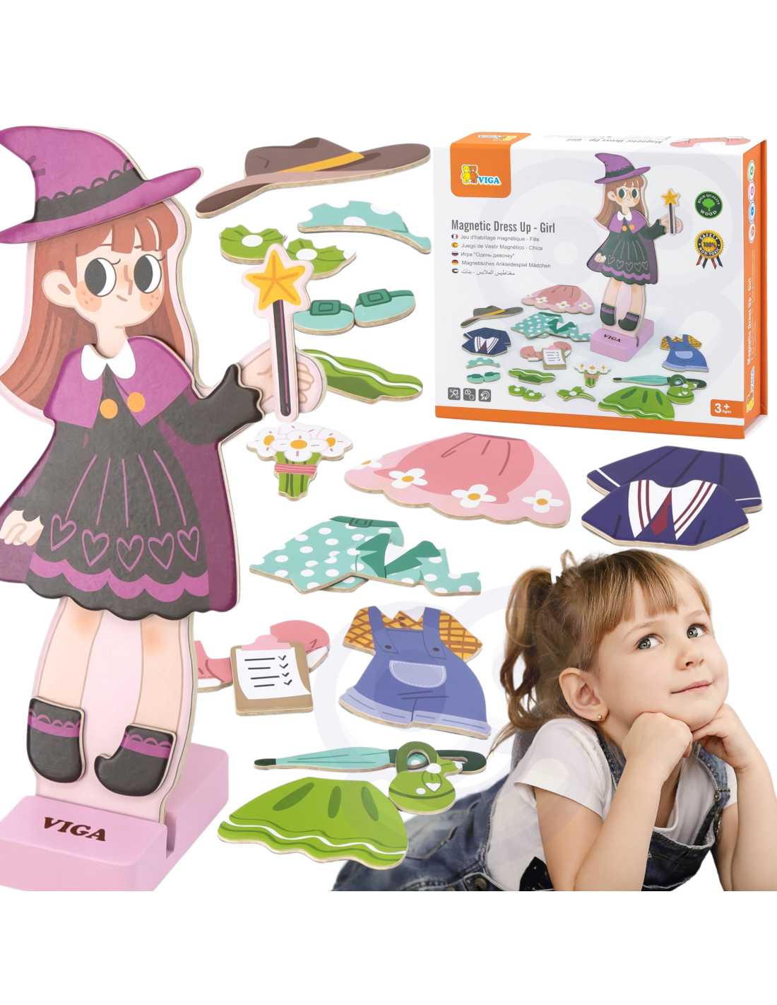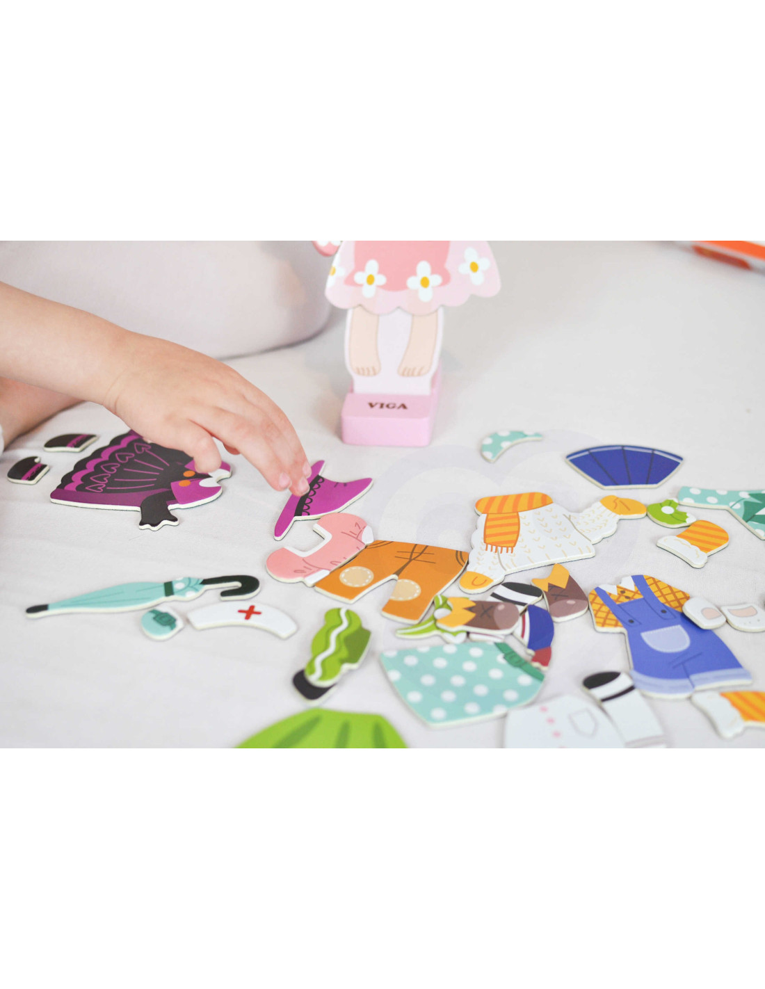 Magnetyczna ubieranka - dziewczynka od firmy Viga to doskonała zabawka dla wszystkich dzieci. Figurkę można dowolnie ubierać w dane zestawy ubranek lub przebierać je w dowolne kombinacje.