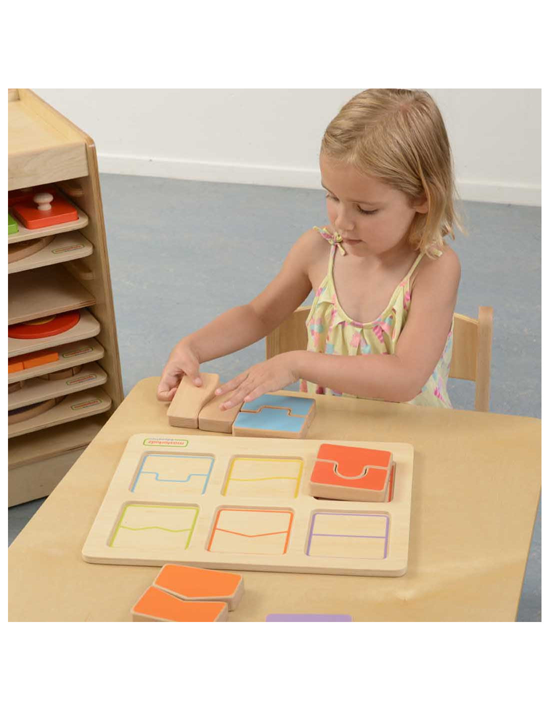 The Shape and Color Sorter Educational Board from Masterkidz is a great toy that will support the early development of logical thinking skills in children. The set includes a wooden board and 6 pairs of blocks with different colors and connections, making the board also helpful for learning shape and color recognition. The toy is made of wood.