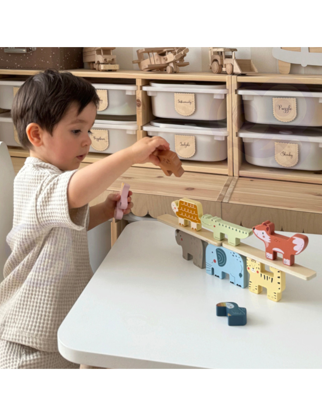 Creative wooden animal-shaped blocks from TOOKY TOY are a great toy that develops logical thinking skills . The set includes nine animals that can be arranged in various combinations, and when you're done, store them away in a convenient fabric bag . Each animal is beautifully crafted and painted with non-toxic paints , making them safe for children. They're the perfect gift for little ones who love creating and playing with wooden toys.