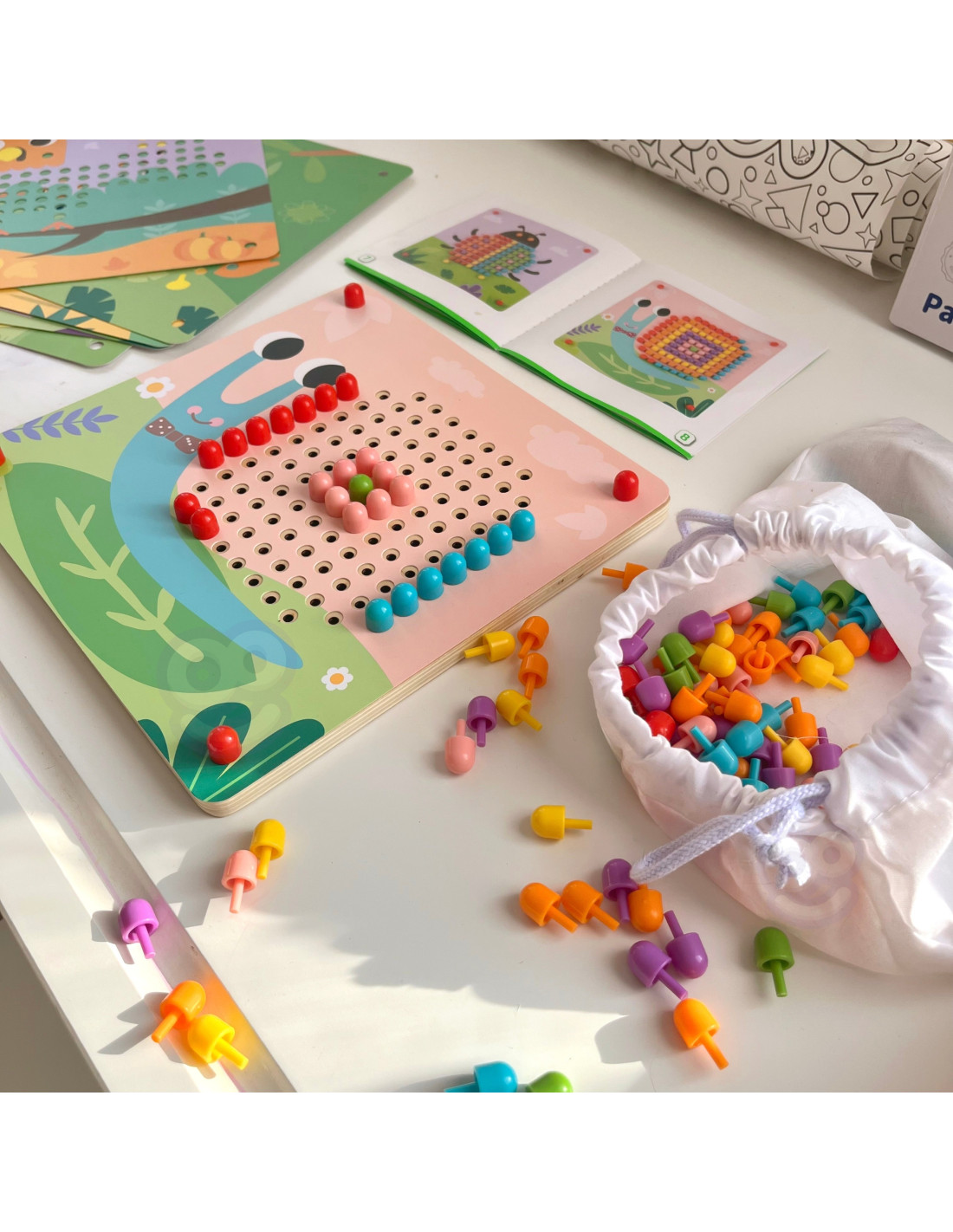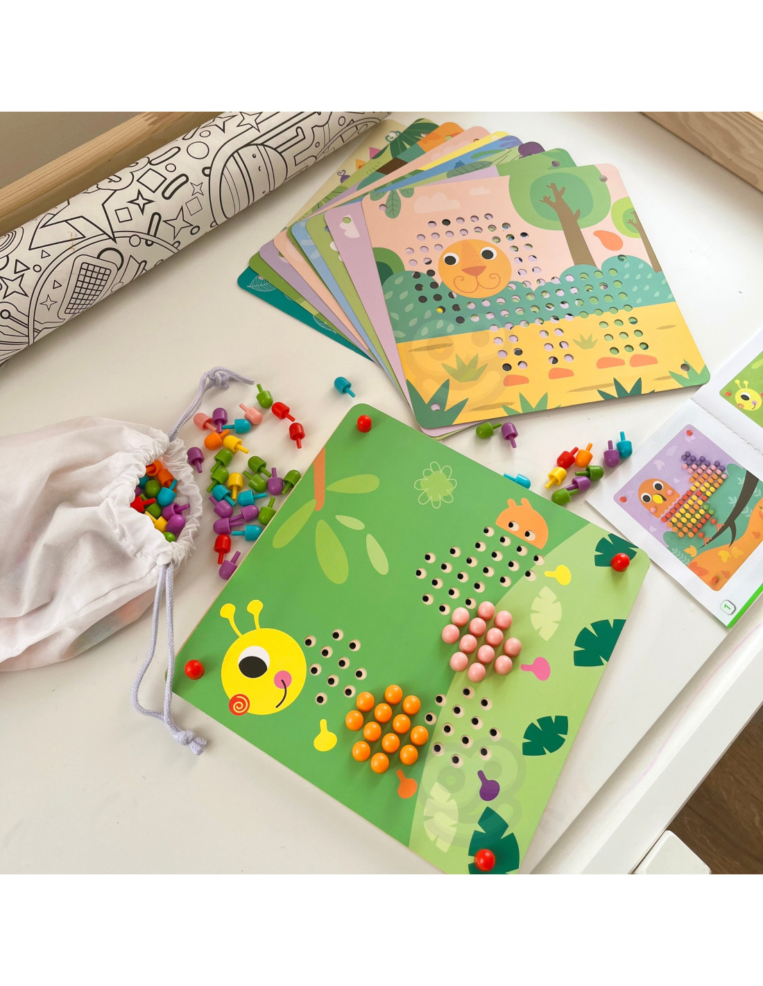 This fantastic puzzle for the youngest children will spark their creativity. The colorful picture boards have spaces for multicolored pins to decorate the artwork and add the finishing touch. Create a beautiful snail shell or colorful fish scales while learning precision and patience. Toys from the renowned company Tooky Toy are aimed at even the youngest children, made from completely natural, biodegradable, and hypoallergenic materials, making them 100% safe and harmless not only for the environment but also for your child.