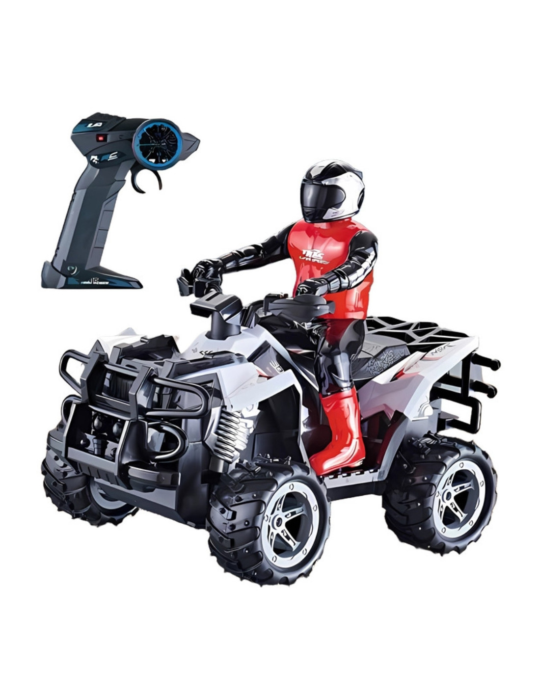 Discover the exciting world of off-road adventures with this spectacular remote-controlled quad bike from Woopie! This advanced remote-controlled model is a true feast for the senses – equipped with a realistic rider figure in professional racing gear, it offers an unforgettable riding experience. Its robust construction with striking details makes this toy captivating from the first glance. Thanks to the advanced 2.4GHz control system, you can enjoy smooth control over any terrain.