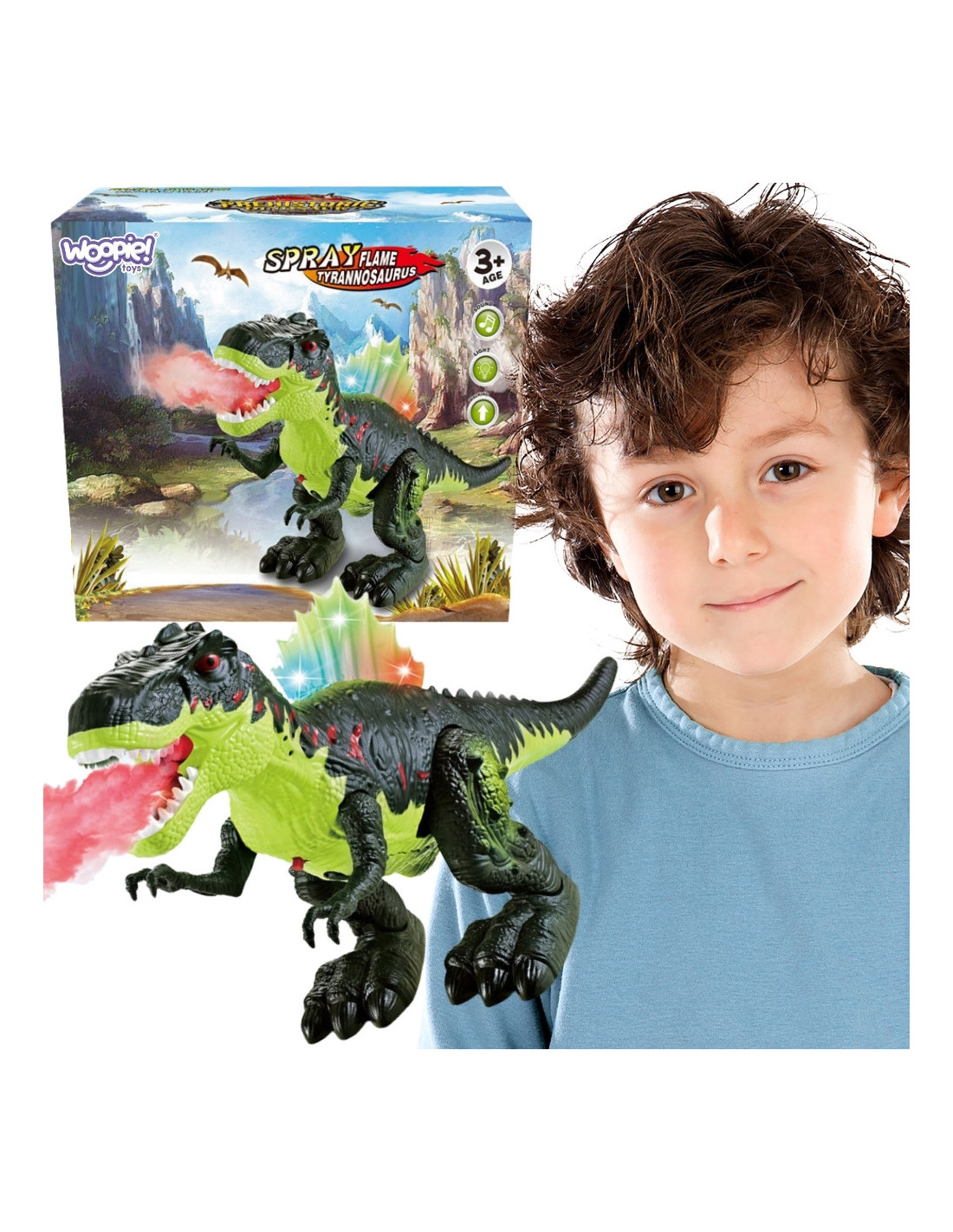A spectacular interactive T-Rex dinosaur with a flame-like mist spray function from Woopie. This incredible toy offers an unforgettable experience with a forward walking function, movable front legs, a glowing back, and authentic roaring sounds. This dinosaur is perfect for little ones who want to experience prehistoric adventures at home.