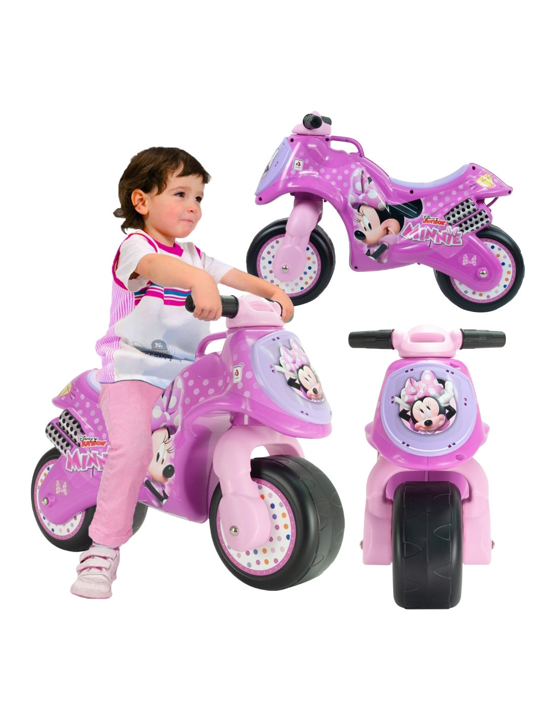 - - a pink ride-on motorbike licensed by Minnie Mouse for children from 18 months of age,