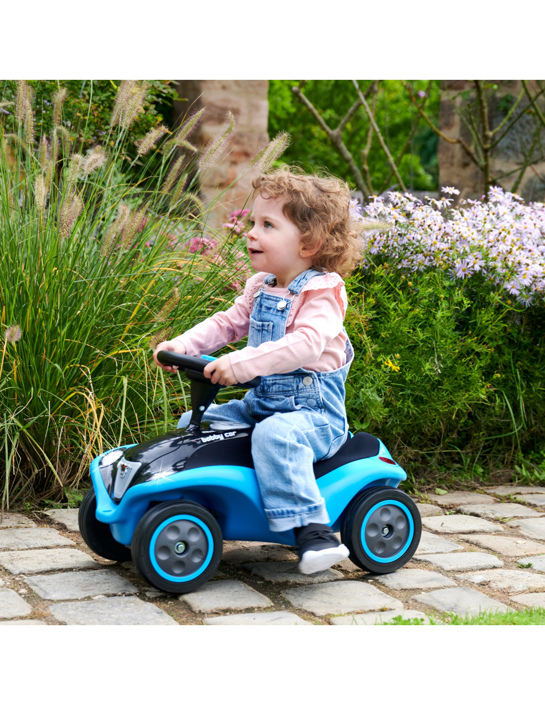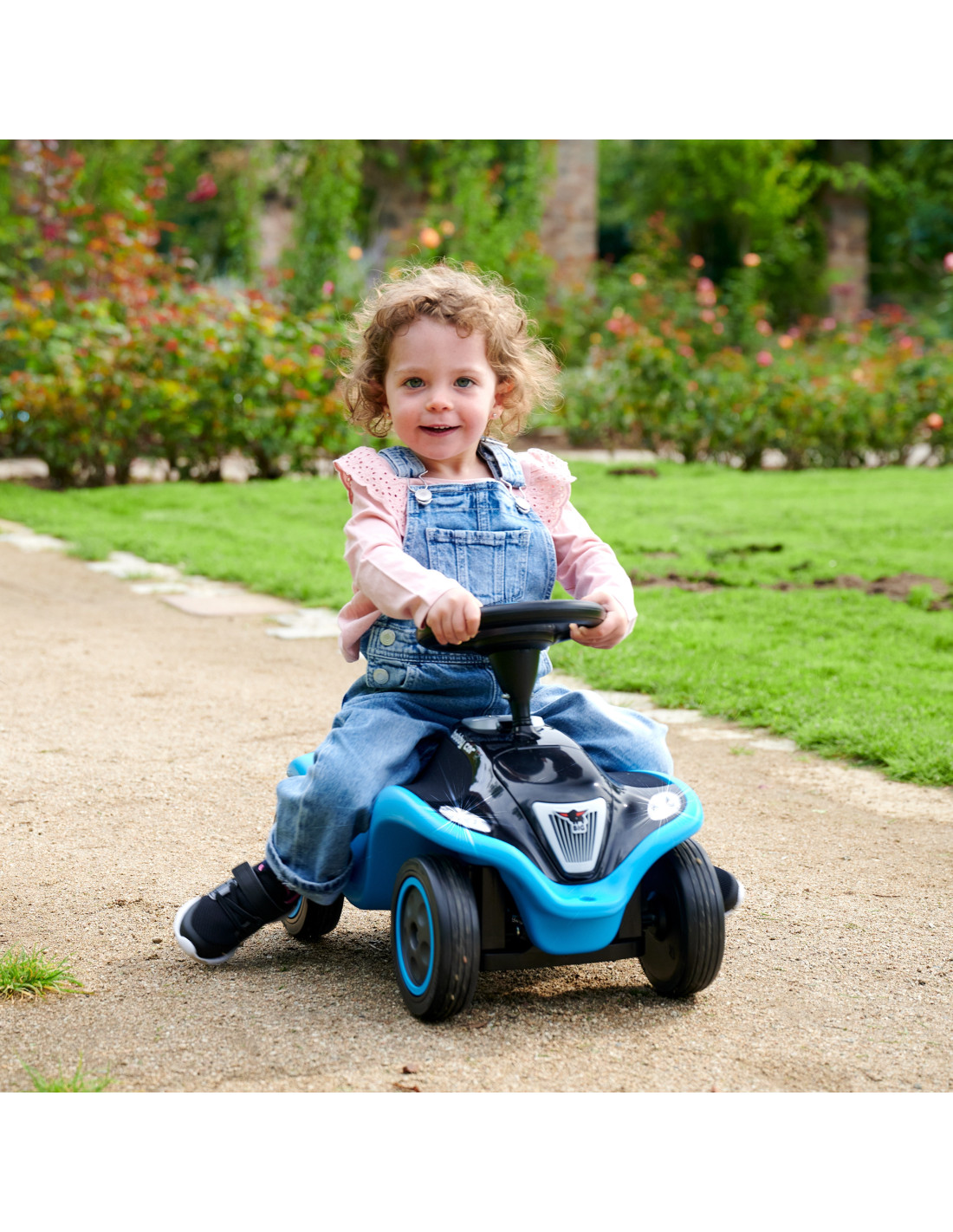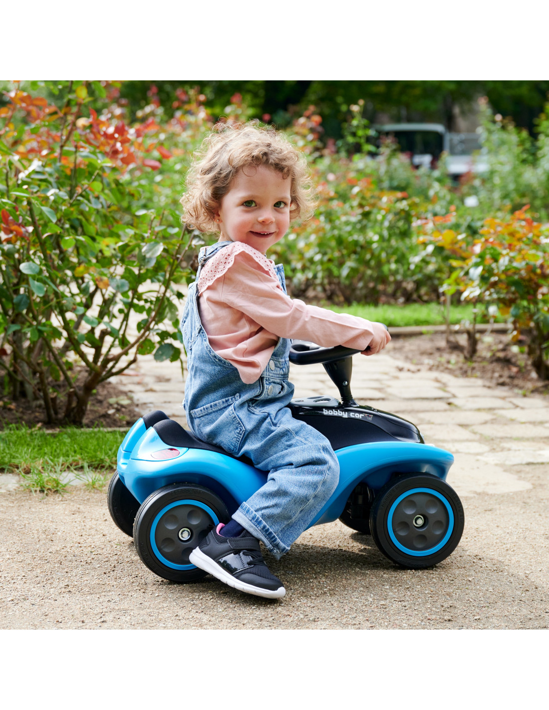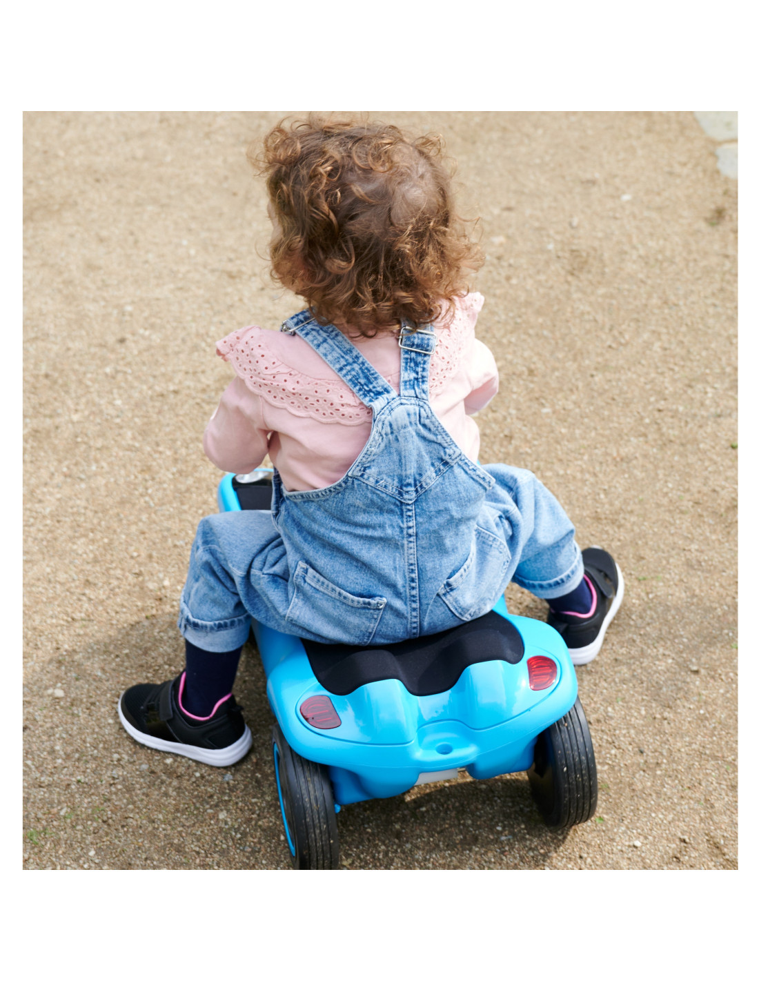 This blue Bobby Car from the renowned BIG brand is perfect for kids who can't wait to get moving! This ride-on car features two LED headlights for an authentic driving experience . It also features a horn and engine sounds . The removable , quiet wheels are gentle on both ears and floors. Furthermore, the hood can be opened when needed, and the comfortable , padded seat is easy to clean .