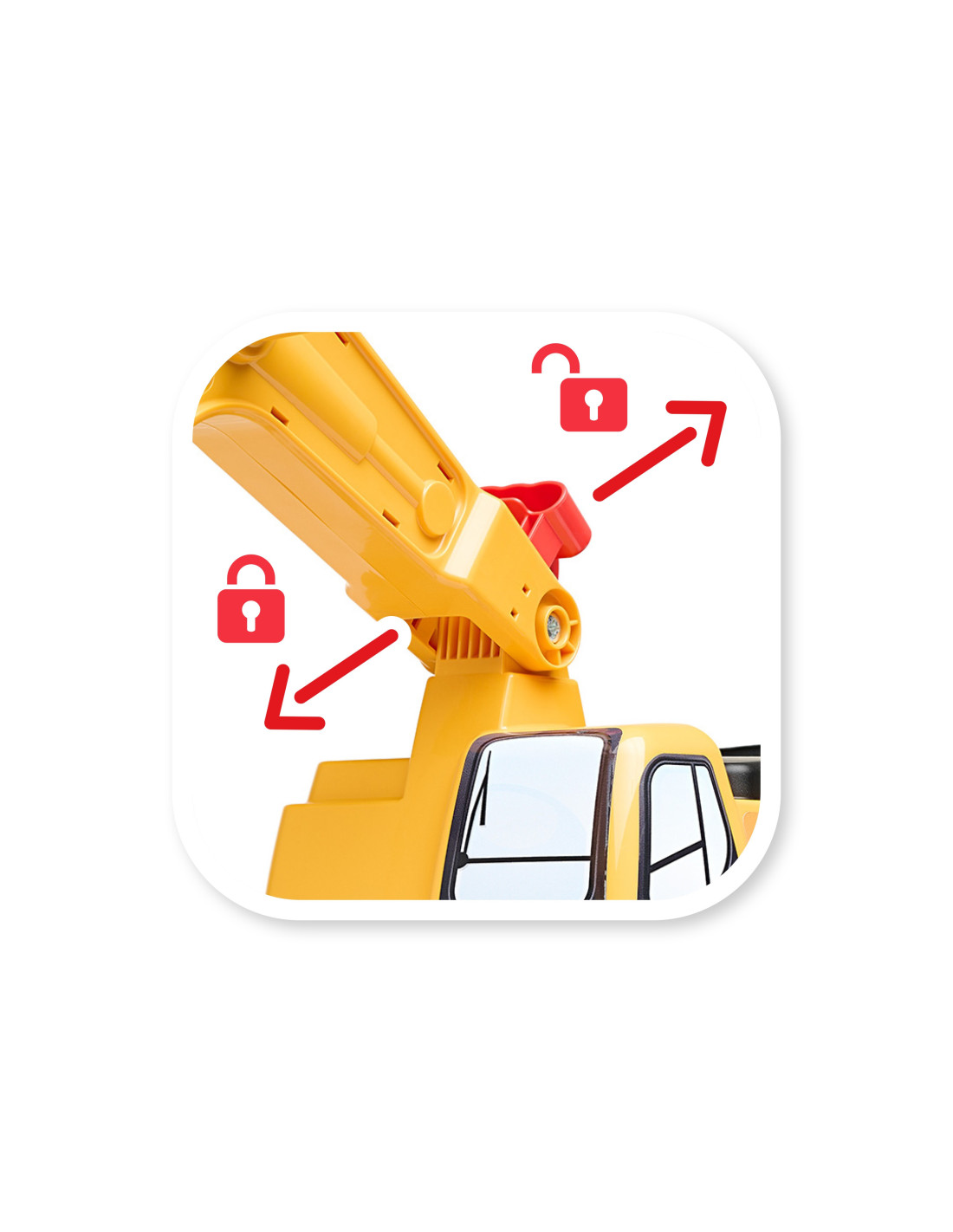 - - fully functional excavator boom, 360 degrees rotation around the vertical axis,