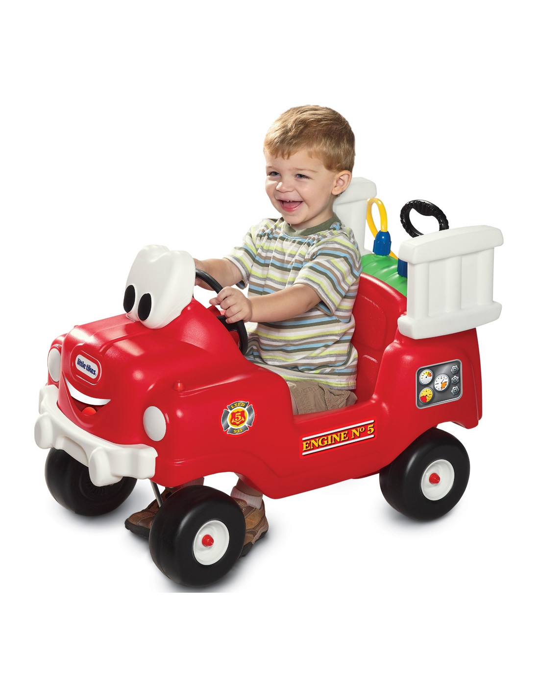 Little Tikes Fire Truck - This red fire truck will bring a lot of joy to your little ones, especially those who aspire to become firefighters. The car has a cheerful face on the front, which makes a lovely impression. This retro-style fire truck will help your child extinguish any fire! The 9-liter tank with hose ensures fantastic fun! The car features a funny face and features real fire truck features! The car can be propelled by a child's legs or pushed like a stroller by an adult. This design allows even smaller children to use it.