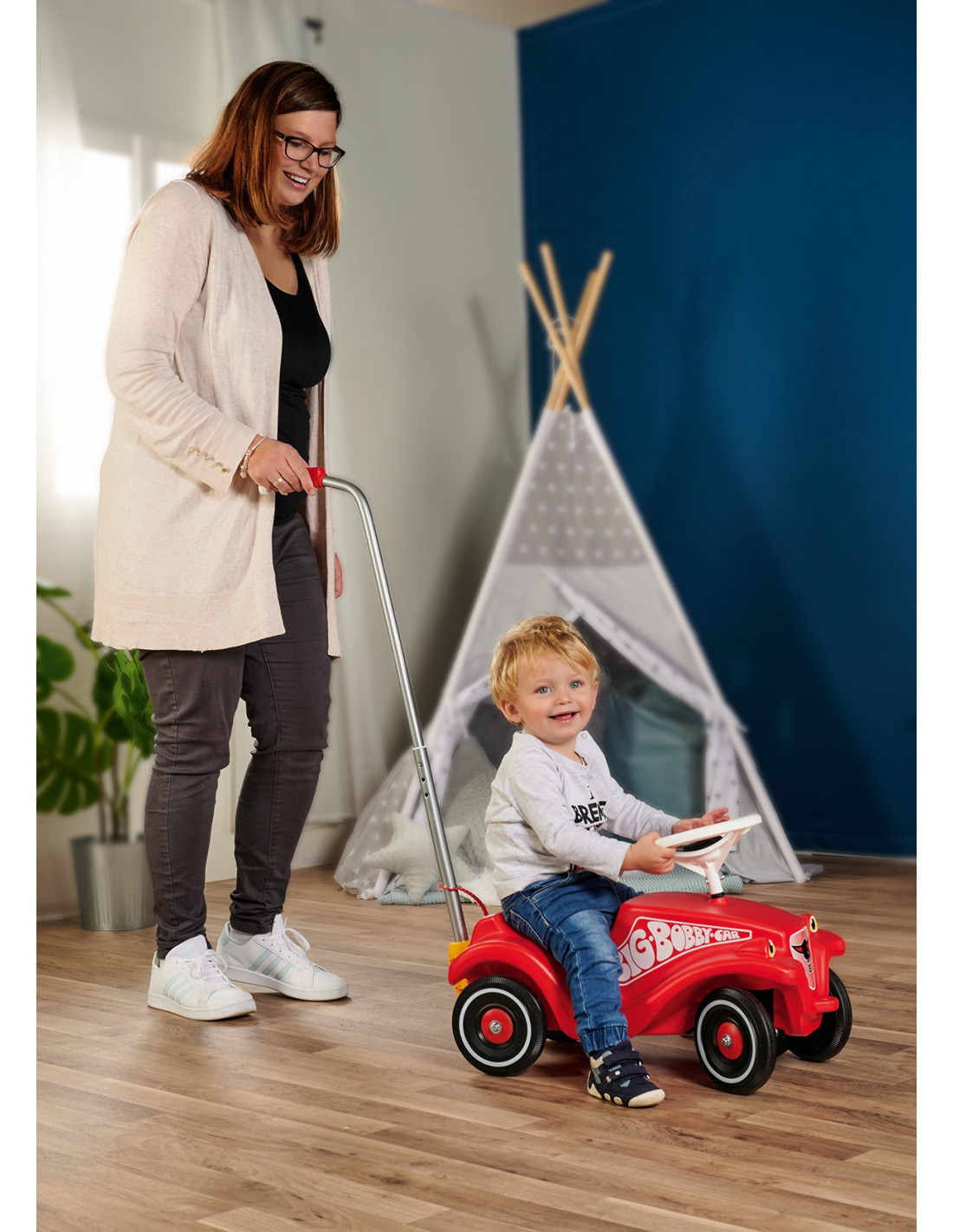 Drążek do jeździków firmy Big, cenionego producenta zabawek dla dzieci, będzie stanowił idealne uzupełnienie jeździka Twojego Dziecka. Regulowany 3- stopniowo drążek do pchania jeździków Bobby Car firmy BIG. Bardzo przydatne udogodnienie, gdy chcemy sprawować kontrolę nad poczynaniami młodego kierowcy lub, gdy małe nóżki zmęczą się podczas dłuższego spaceru. Drążek jest łatwy w montażu - do jego umocowania wykorzystuje się uchwyt do przyczepki. Pasuje do modeli z serii BIG Bobby Car wyposażonych w uchwyt do przyczepki.