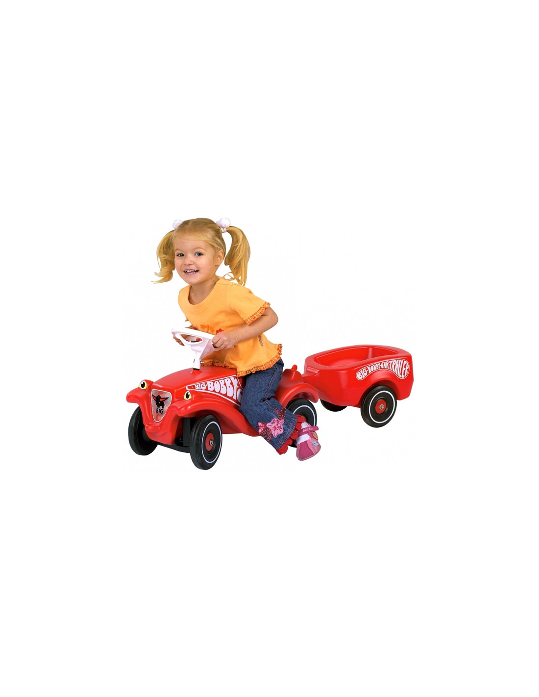 Children love discovering the world on their favorite BIG ride-on vehicles. The practical red BIG trailer will diversify play and bring children tons of joy. The trailer can transport anything the little driver can load into it. A teddy bear, a suitcase, flowers for the princess, and even sand for building a castle will all fit in the back!