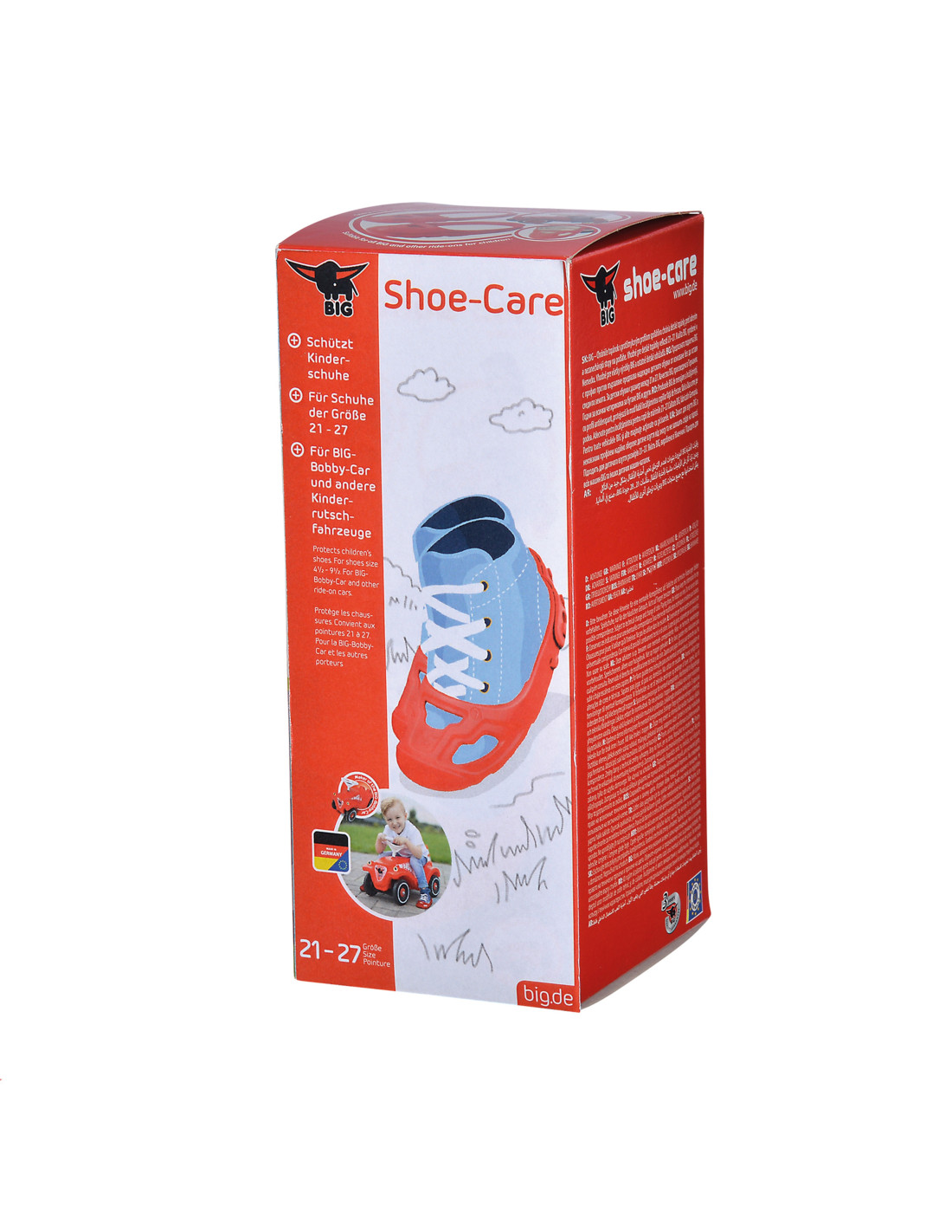 With BIG protectors, you don't have to worry about your child's shoes . These special covers protect their shoes from damage while riding. Whether your child brakes hard or rides on uneven terrain, BIG protectors will handle it!